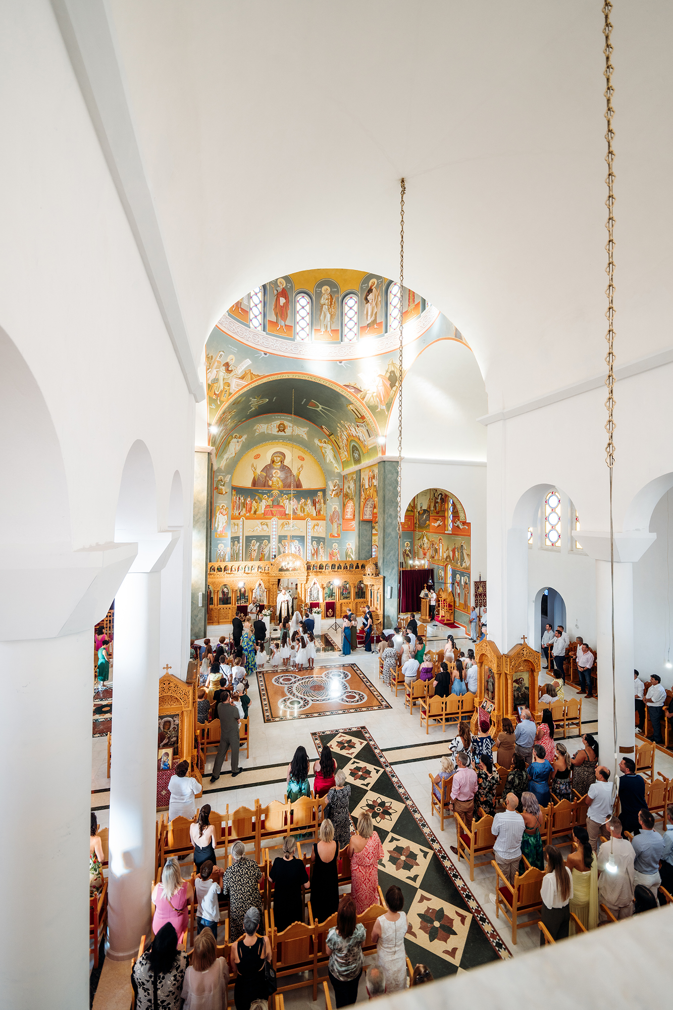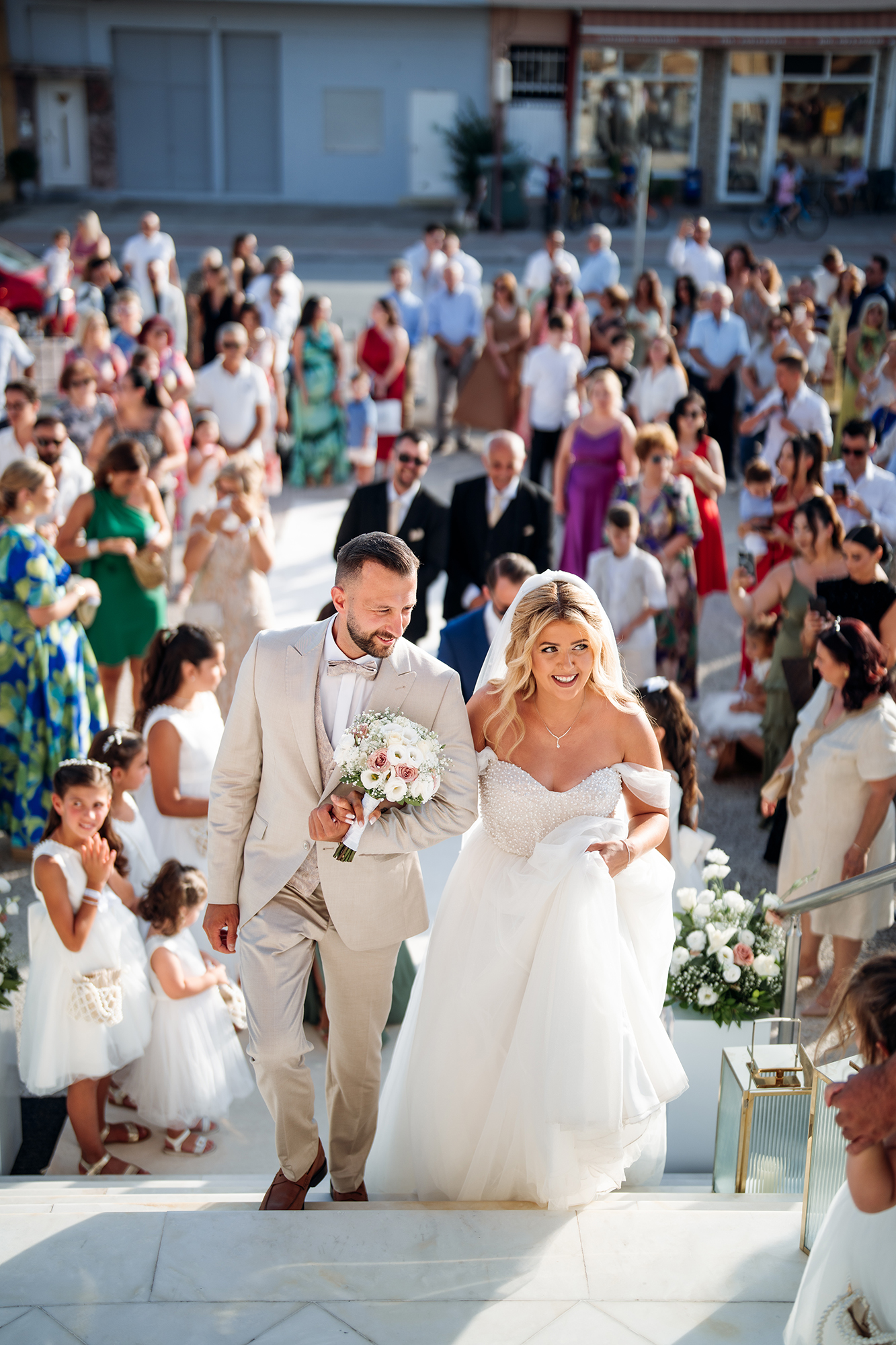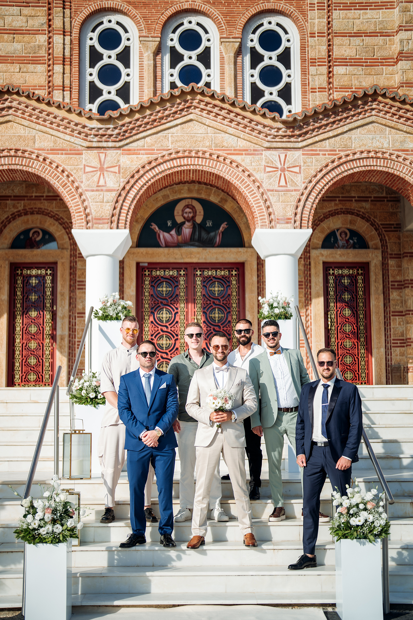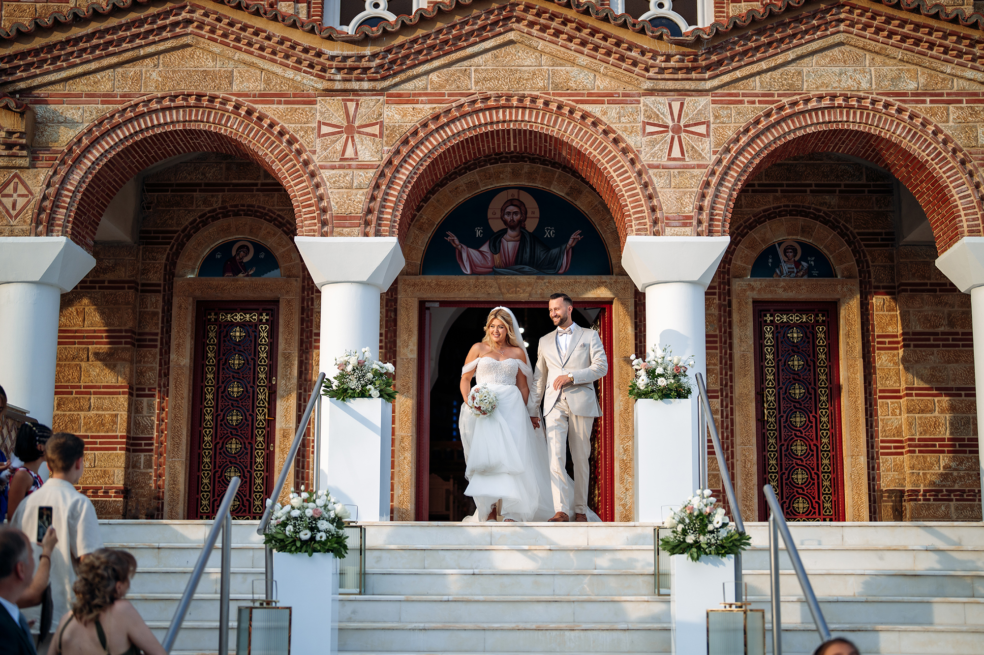 Yiannis listened to us and got dressed at a beautiful hotel. Nicole got ready at her parents’ house and walked to the church next door.