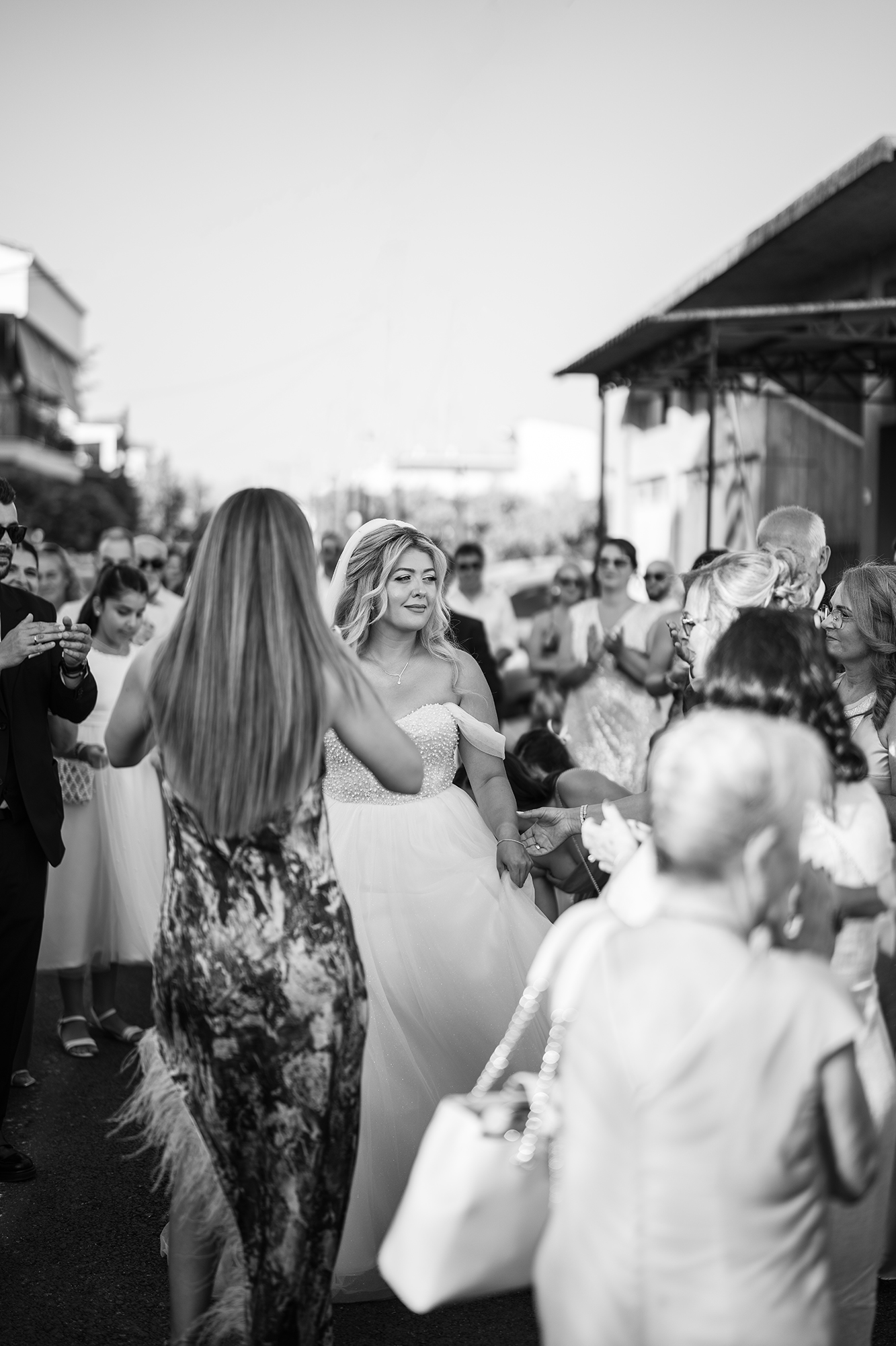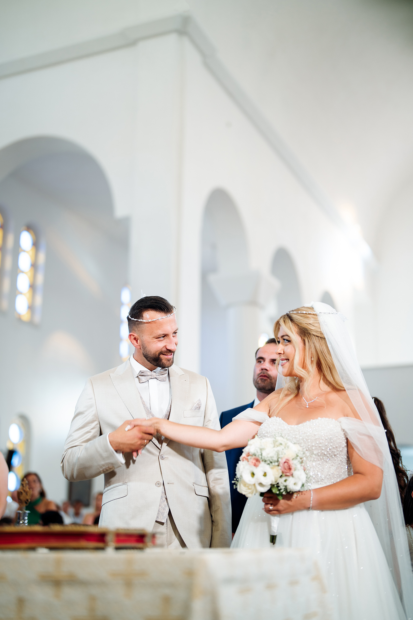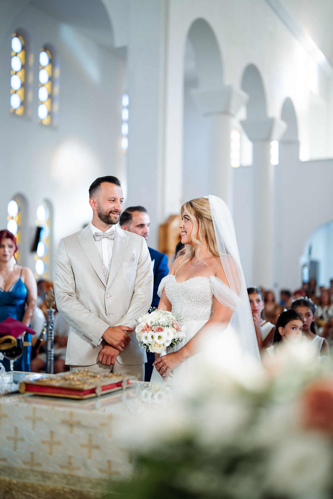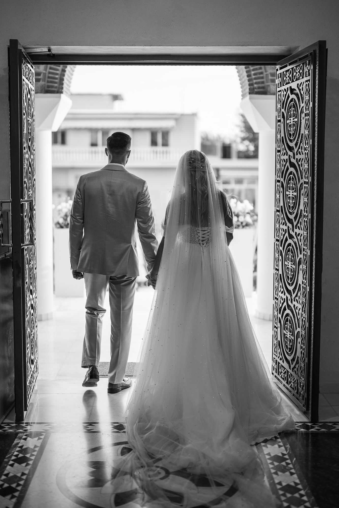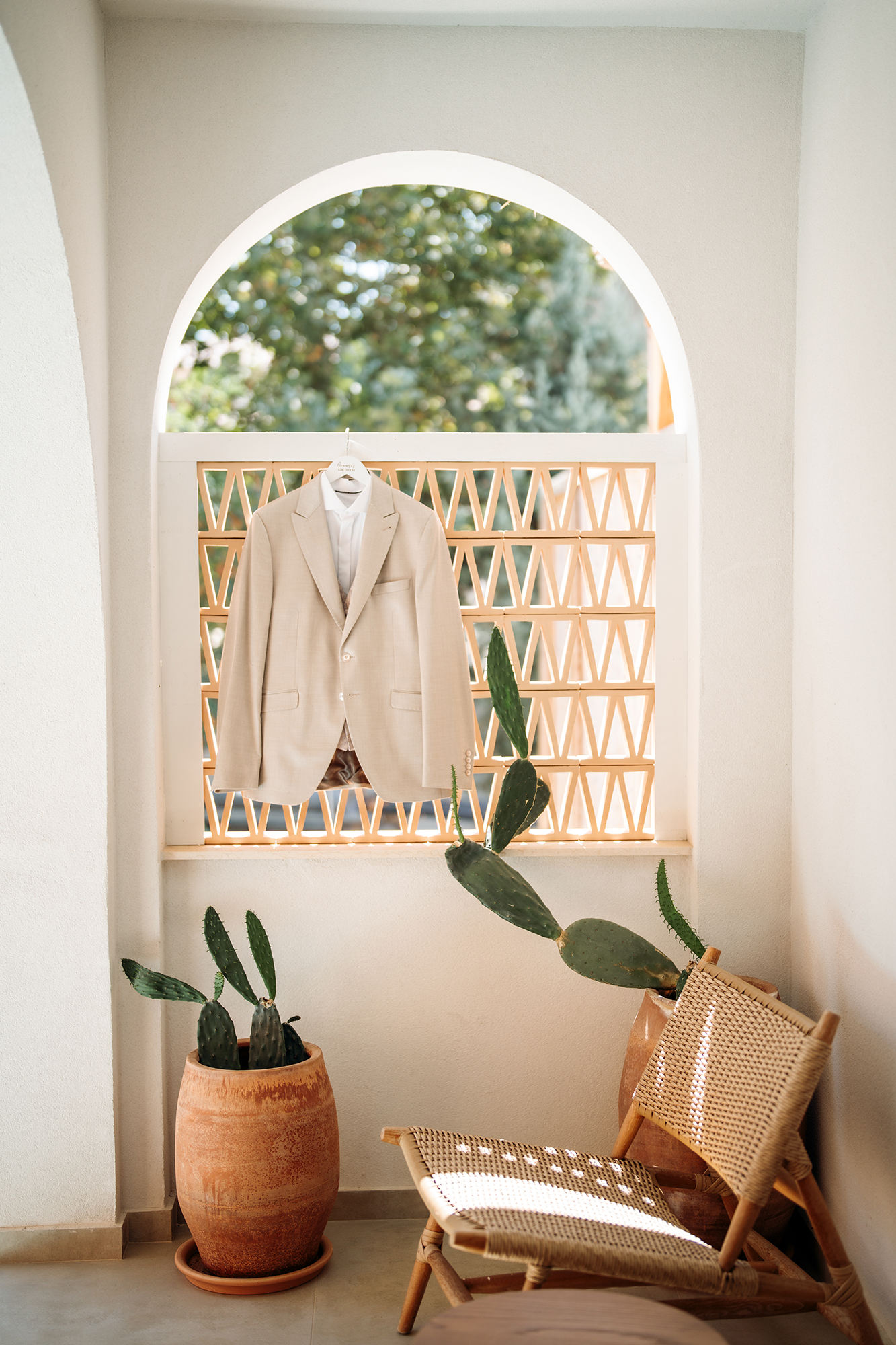Yiannis listened to us and got dressed at a beautiful hotel. Nicole got ready at her parents’ house and walked to the church next door.
