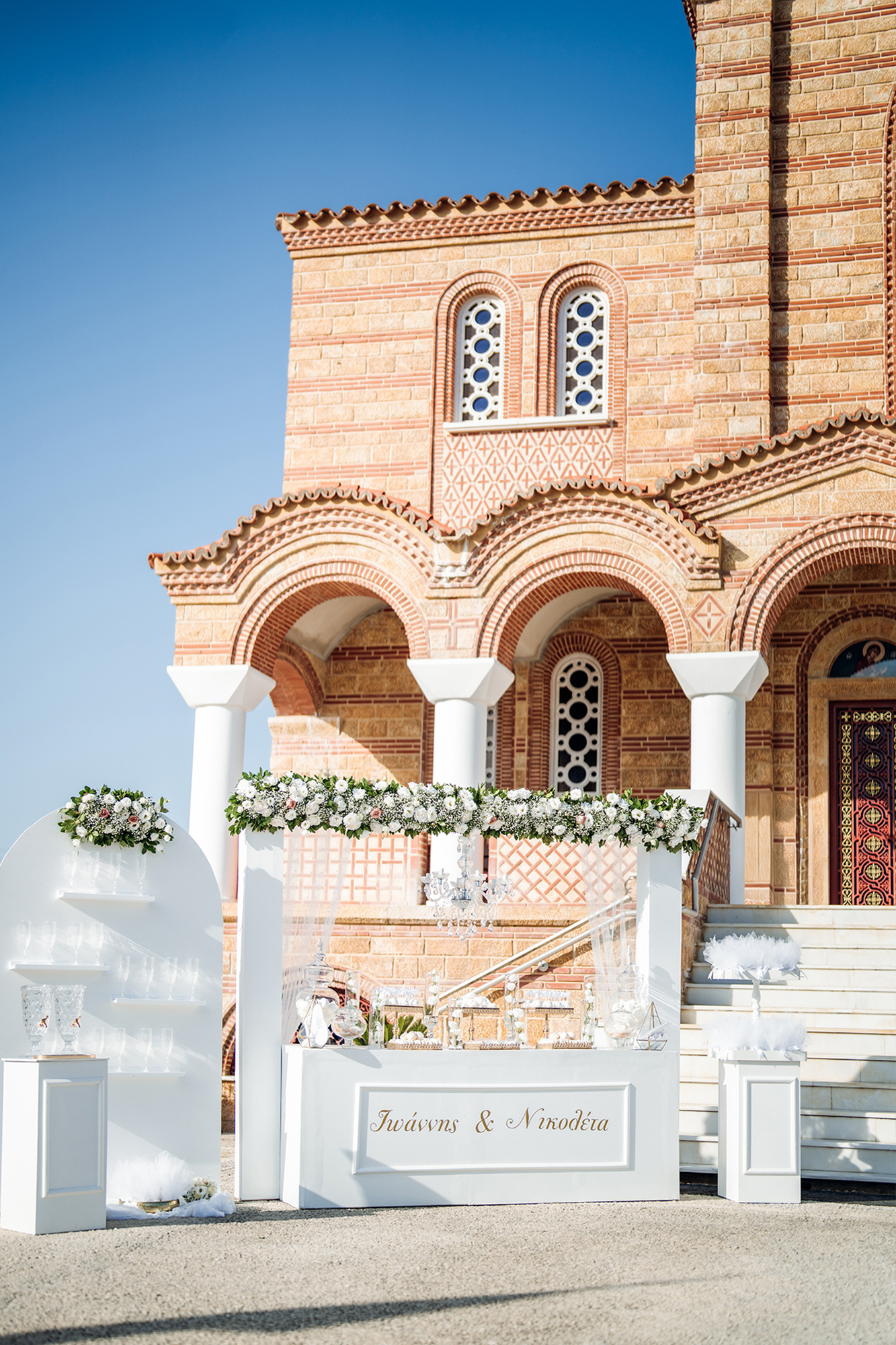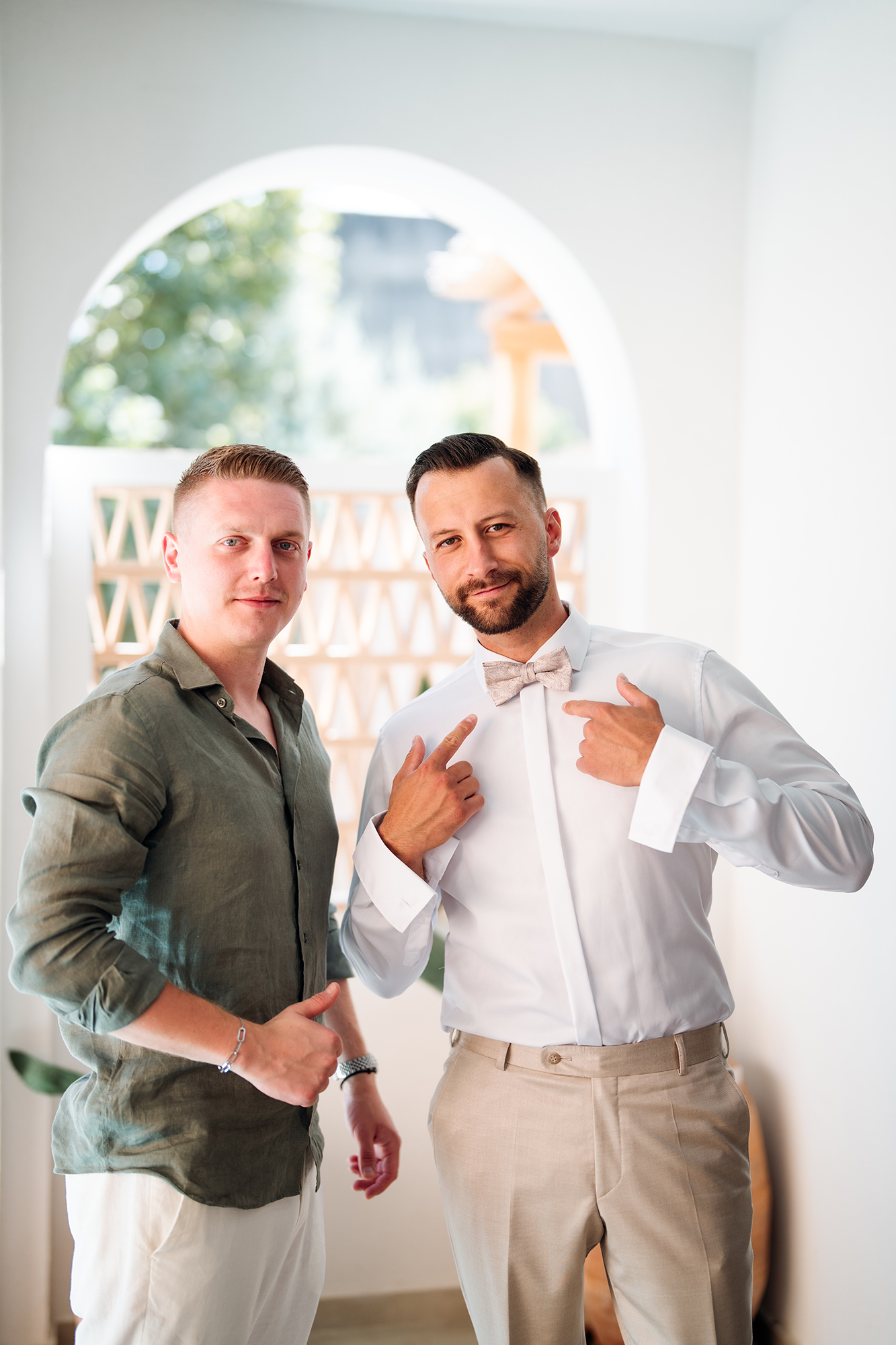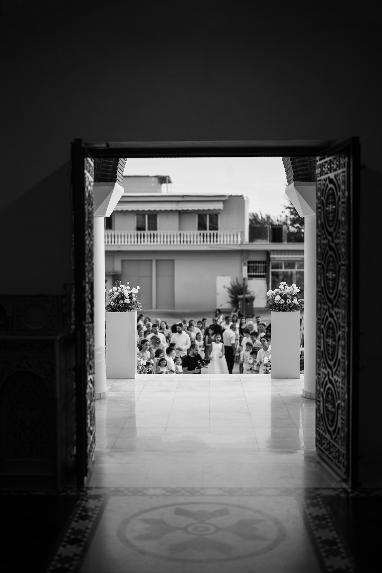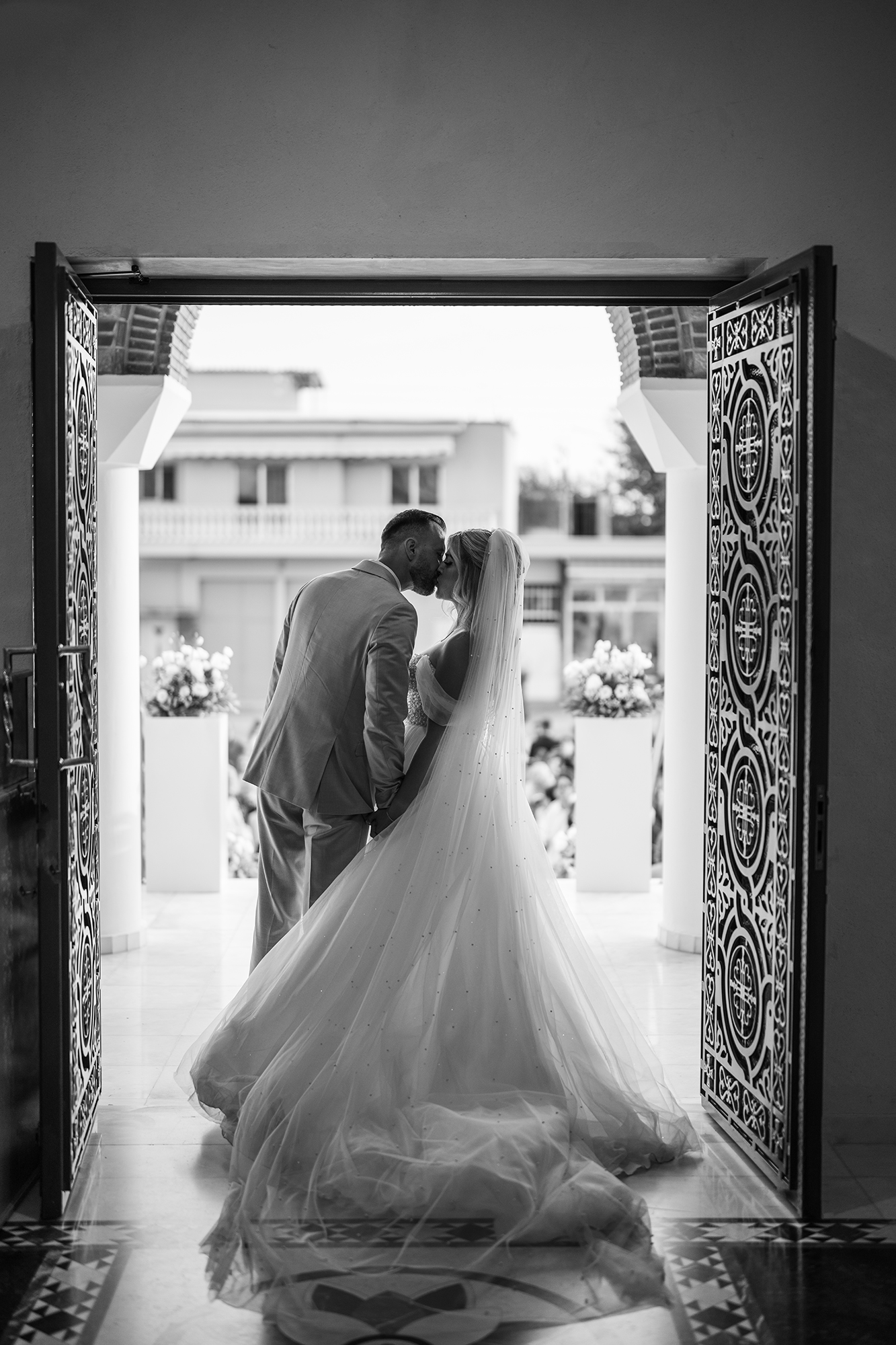 Yiannis listened to us and got dressed at a beautiful hotel. Nicole got ready at her parents’ house and walked to the church next door.