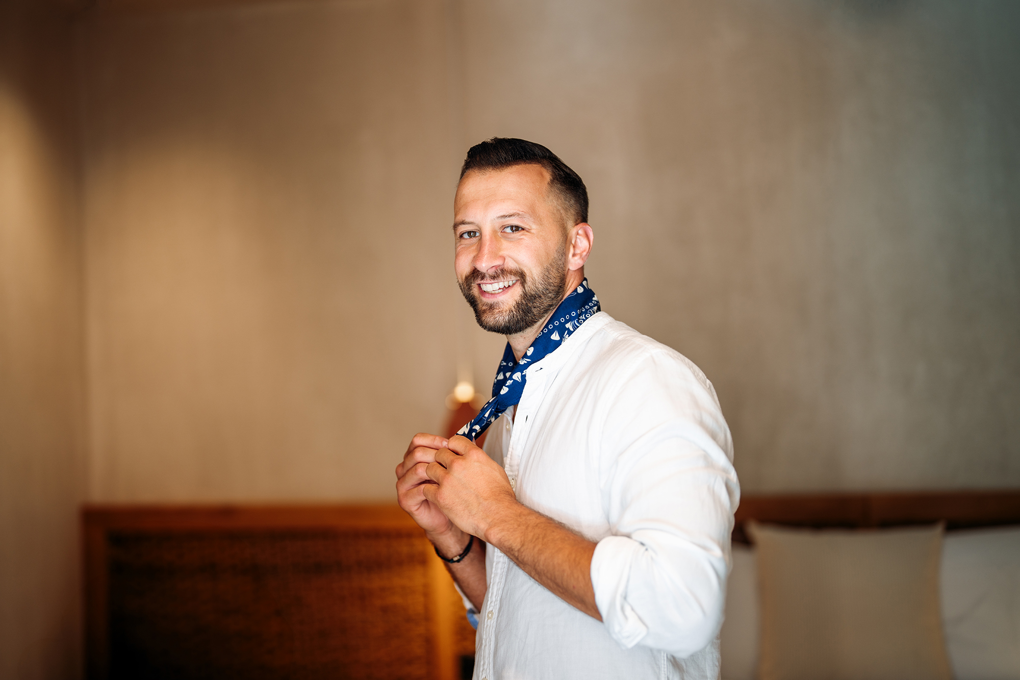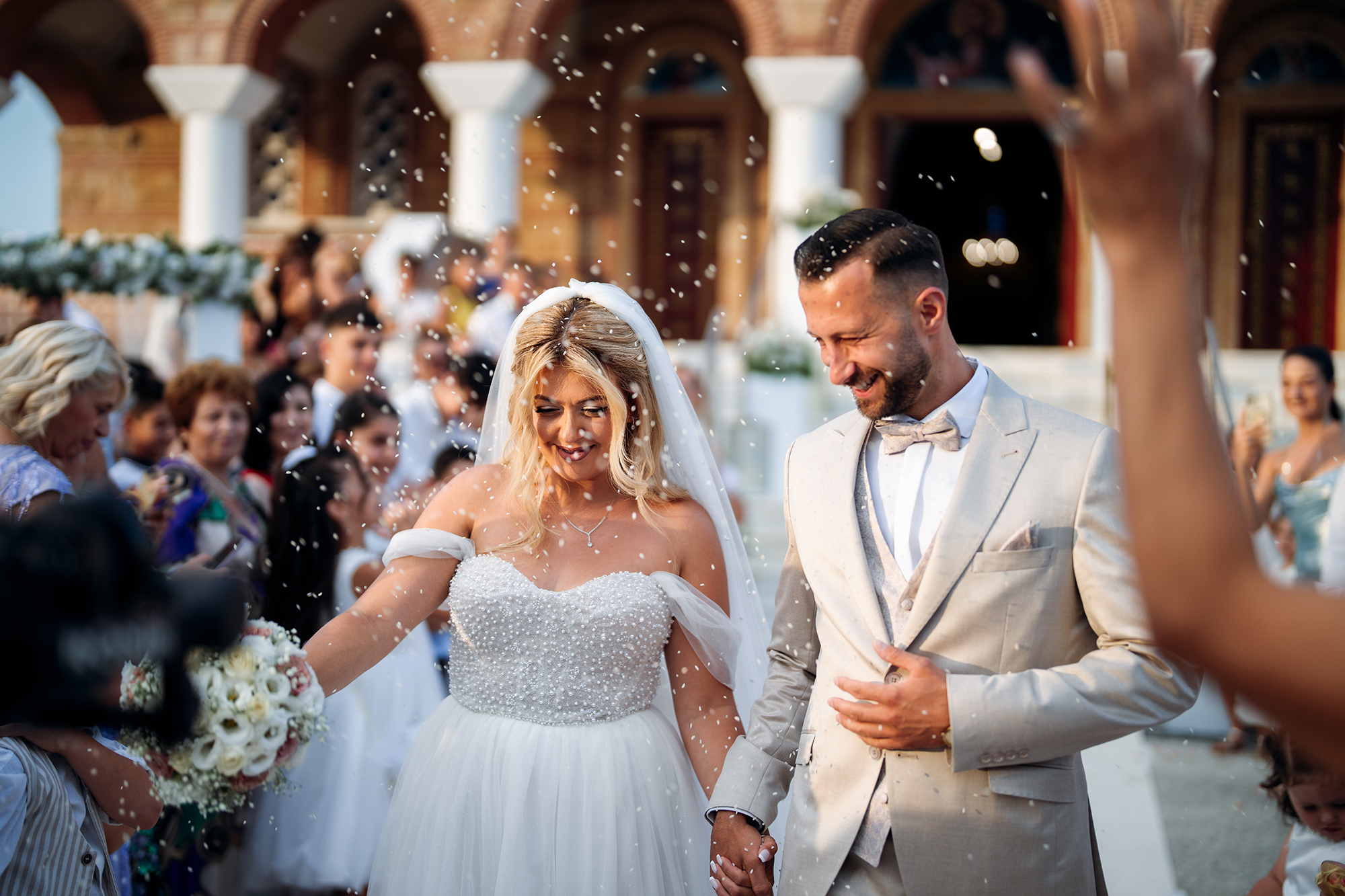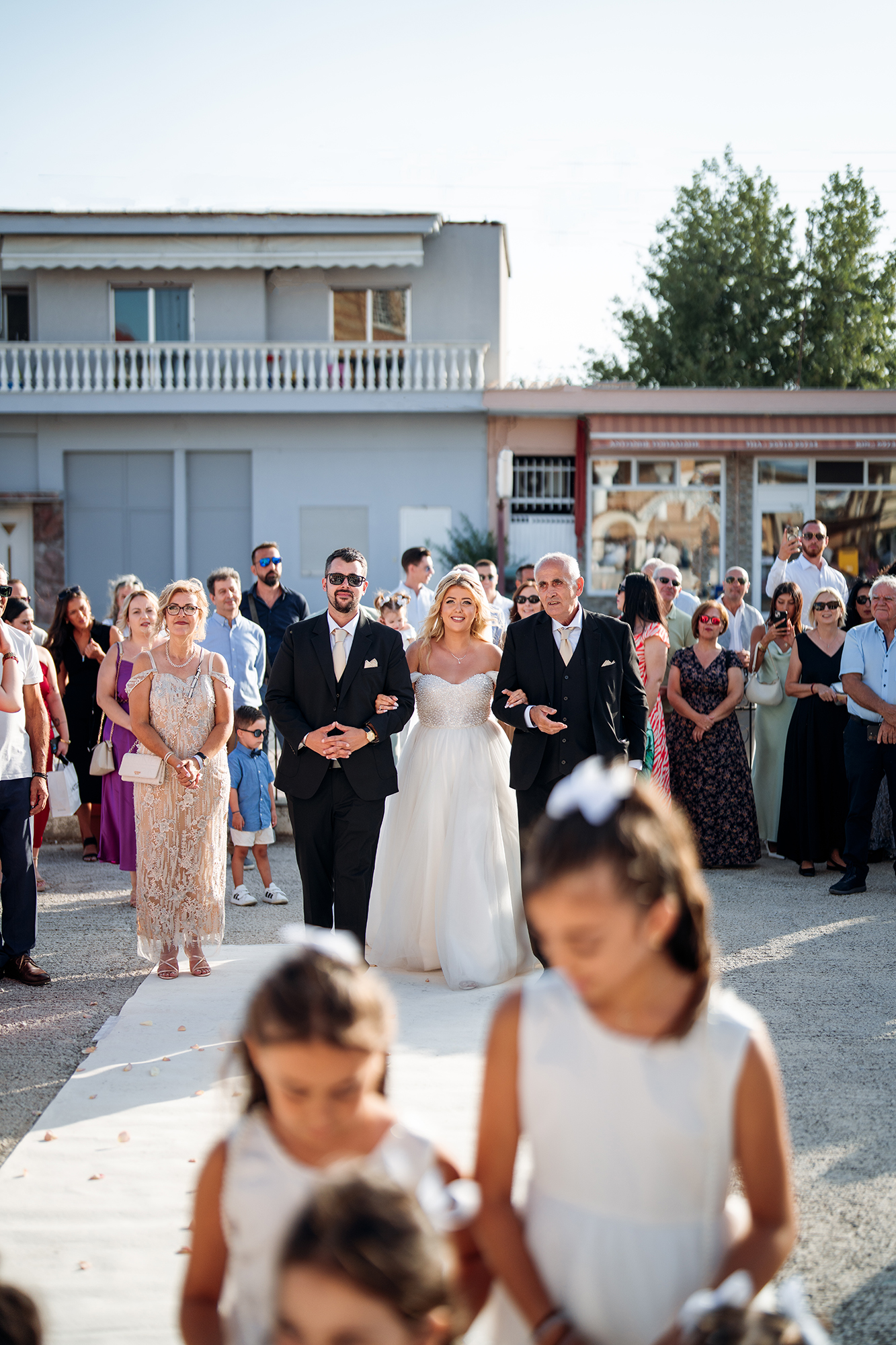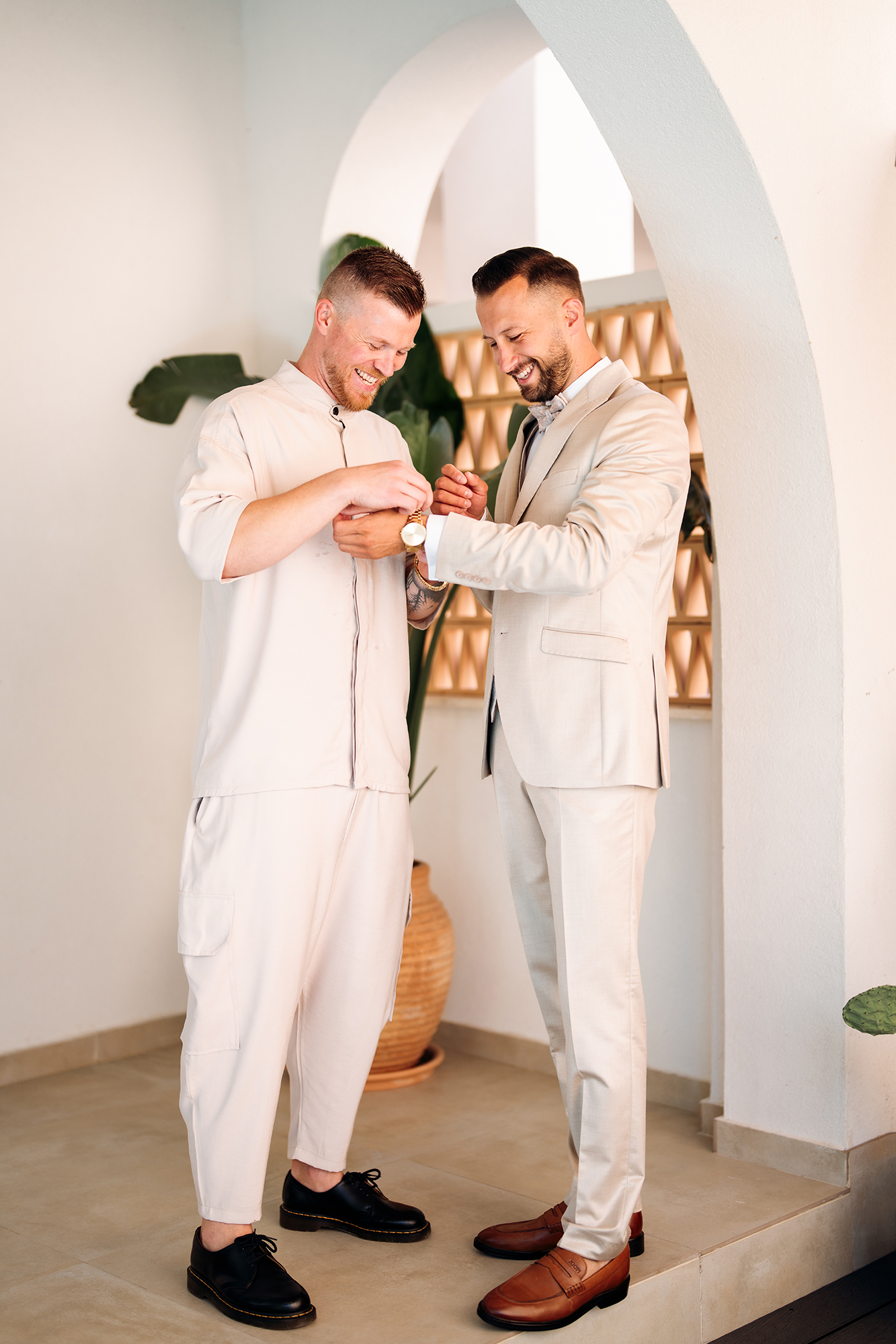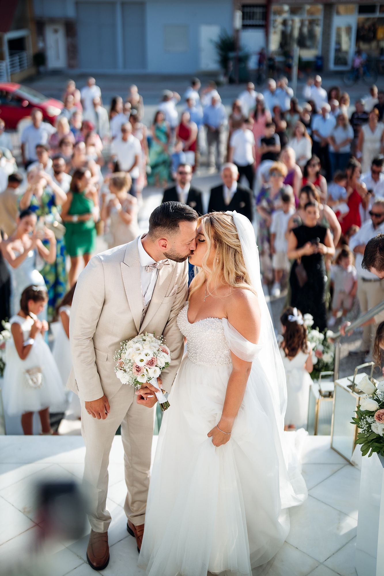 Yiannis listened to us and got dressed at a beautiful hotel. Nicole got ready at her parents’ house and walked to the church next door.