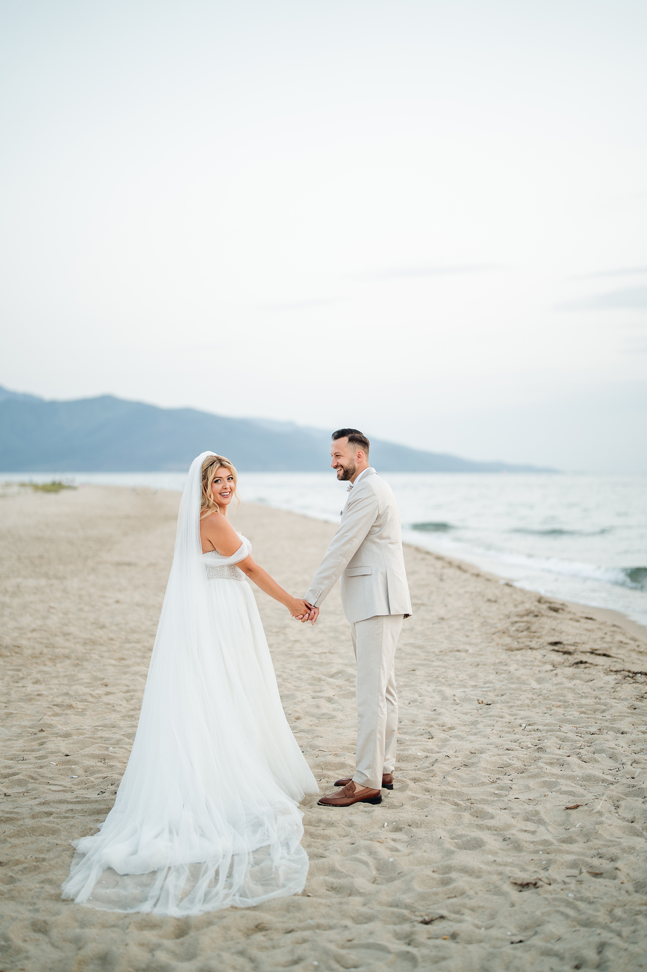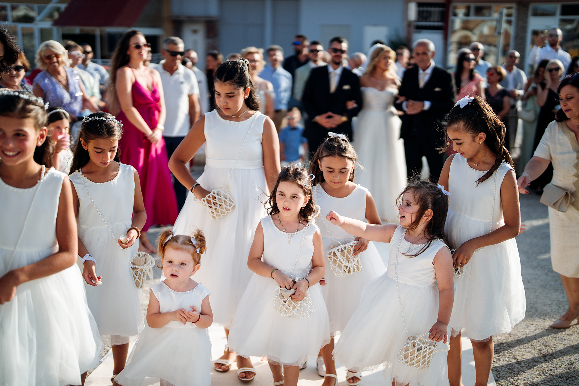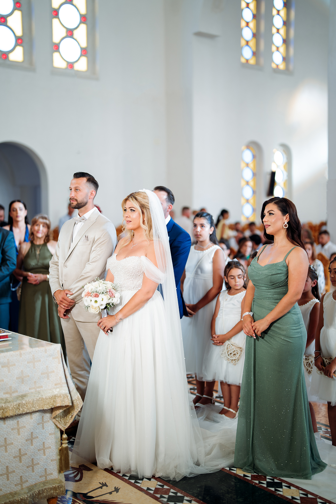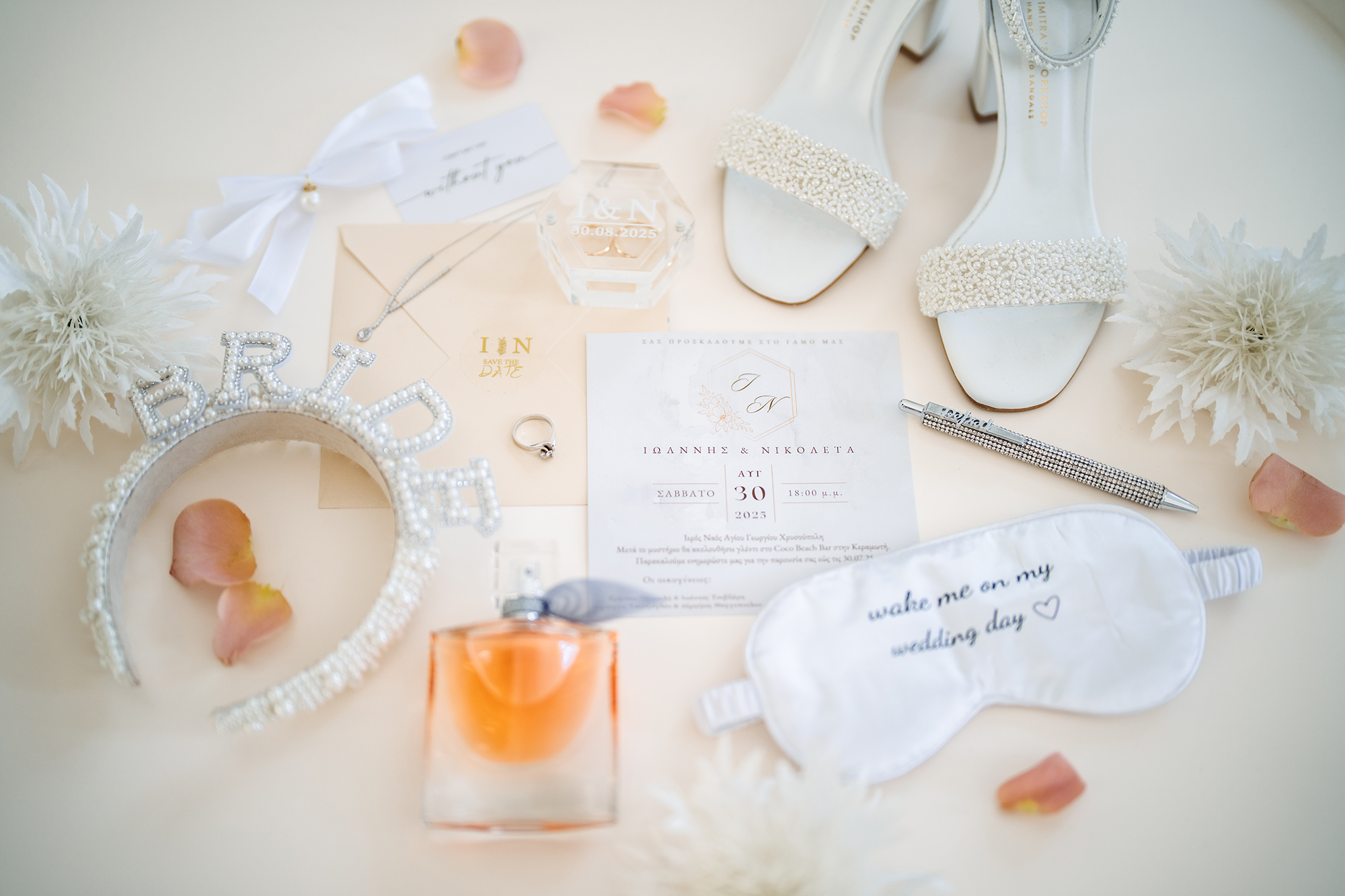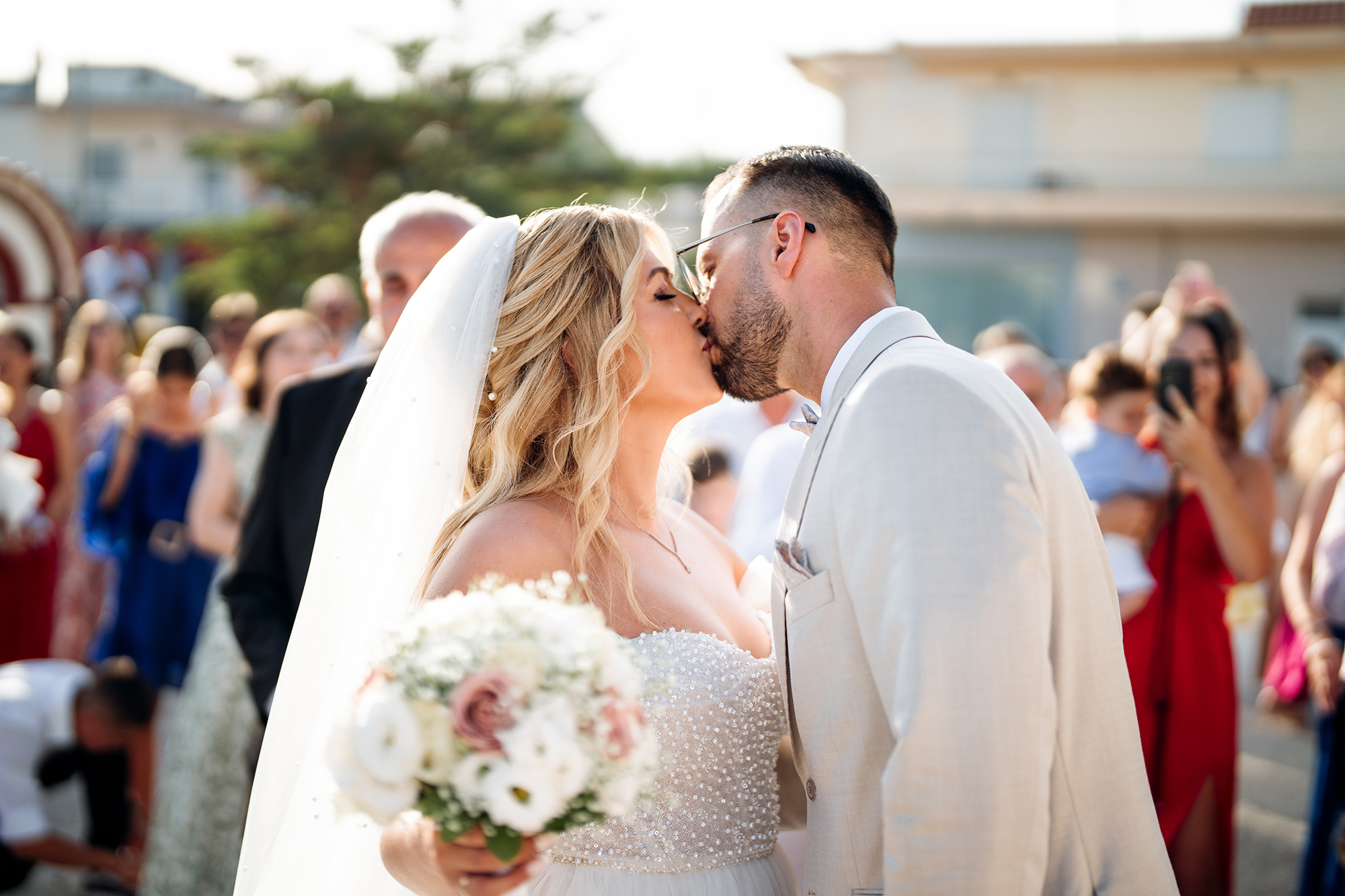 Yiannis listened to us and got dressed at a beautiful hotel. Nicole got ready at her parents’ house and walked to the church next door.
