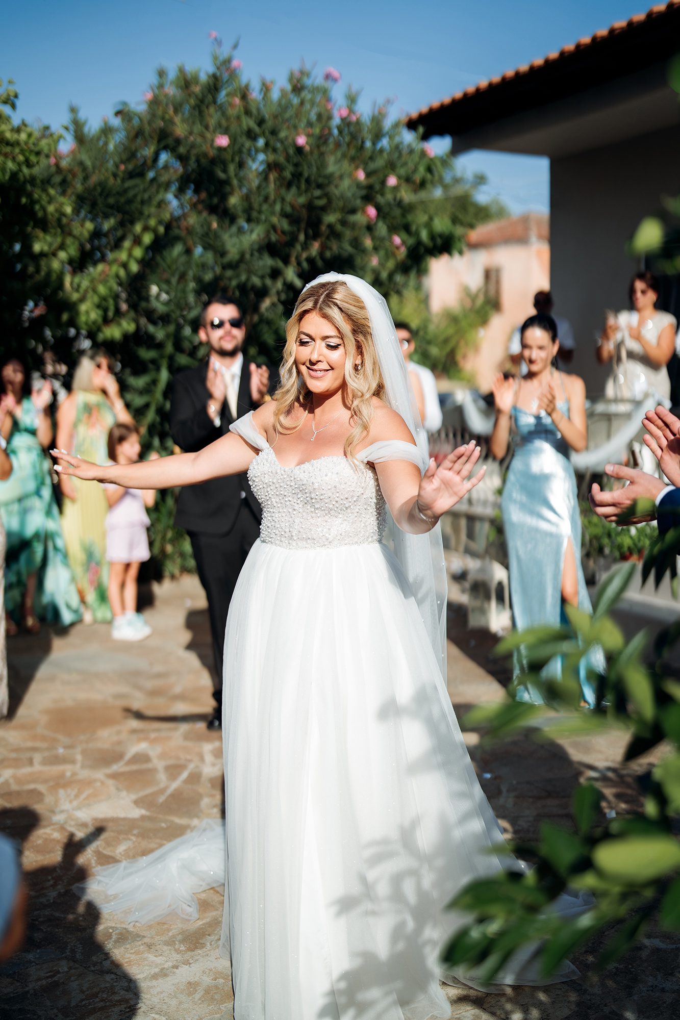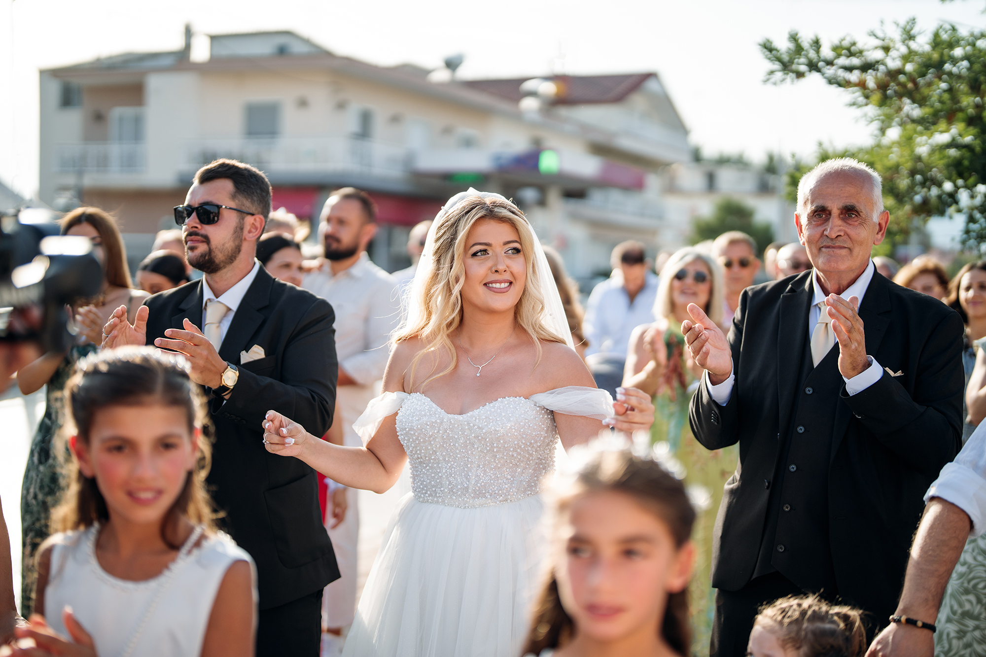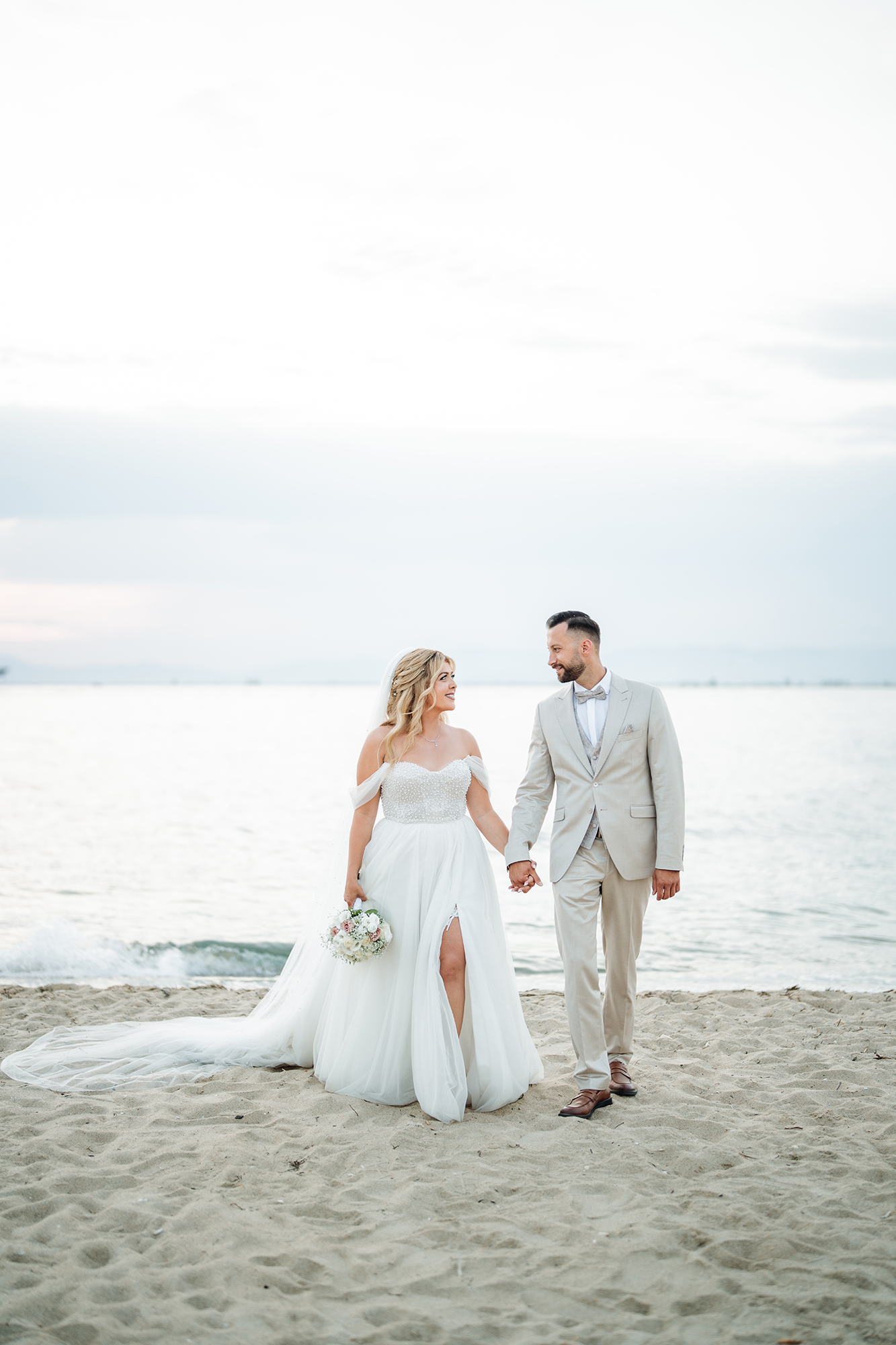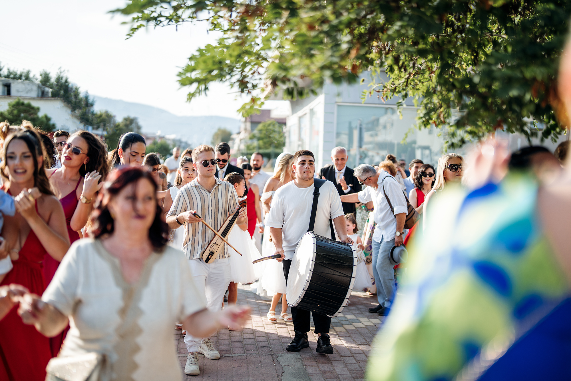 Yiannis listened to us and got dressed at a beautiful hotel. Nicole got ready at her parents’ house and walked to the church next door.