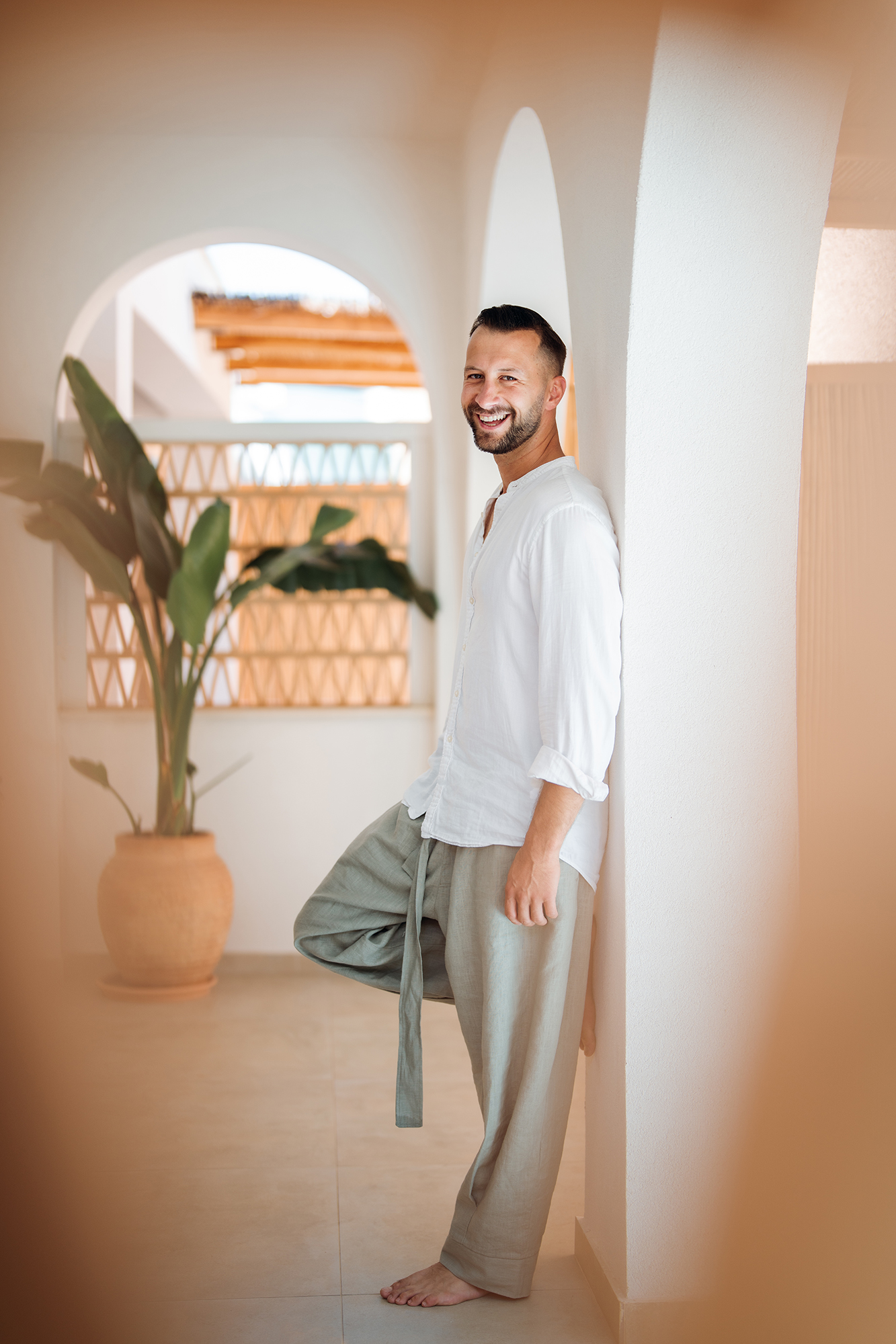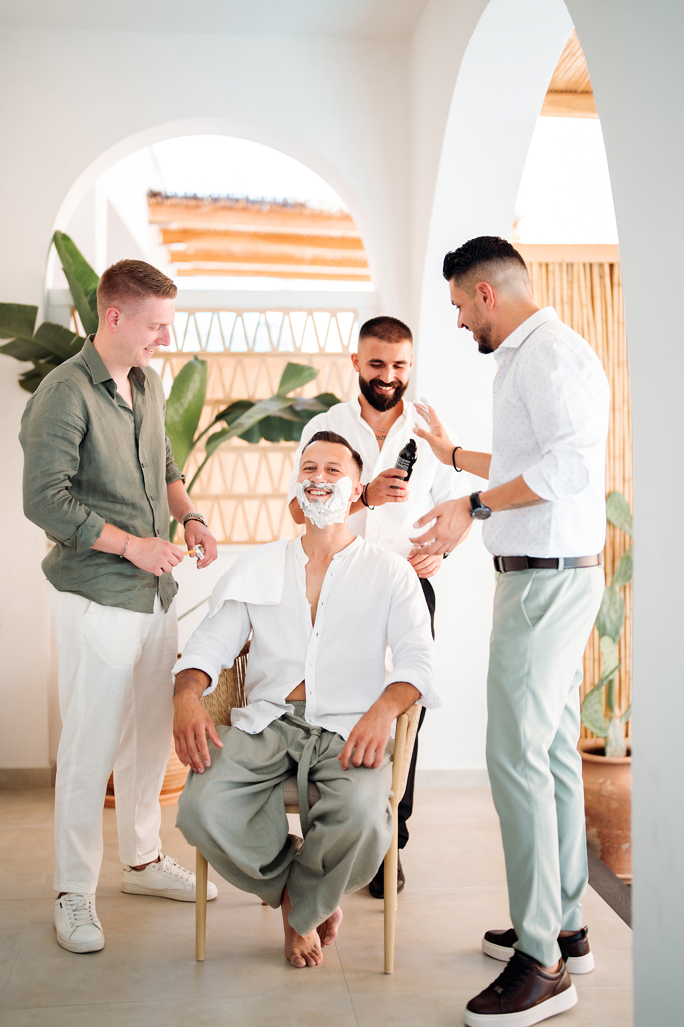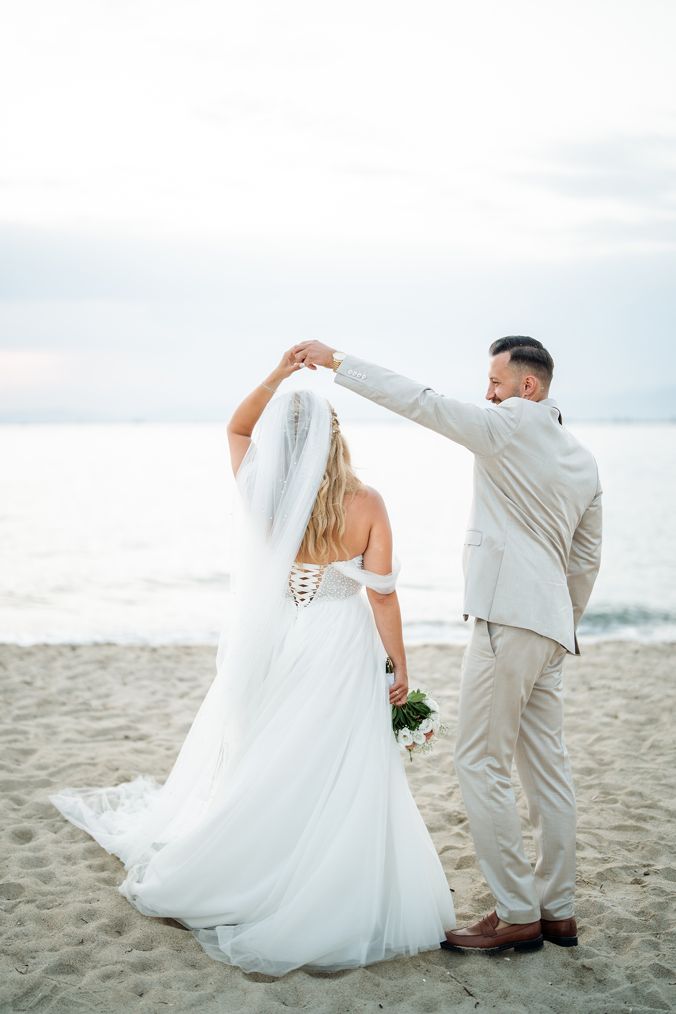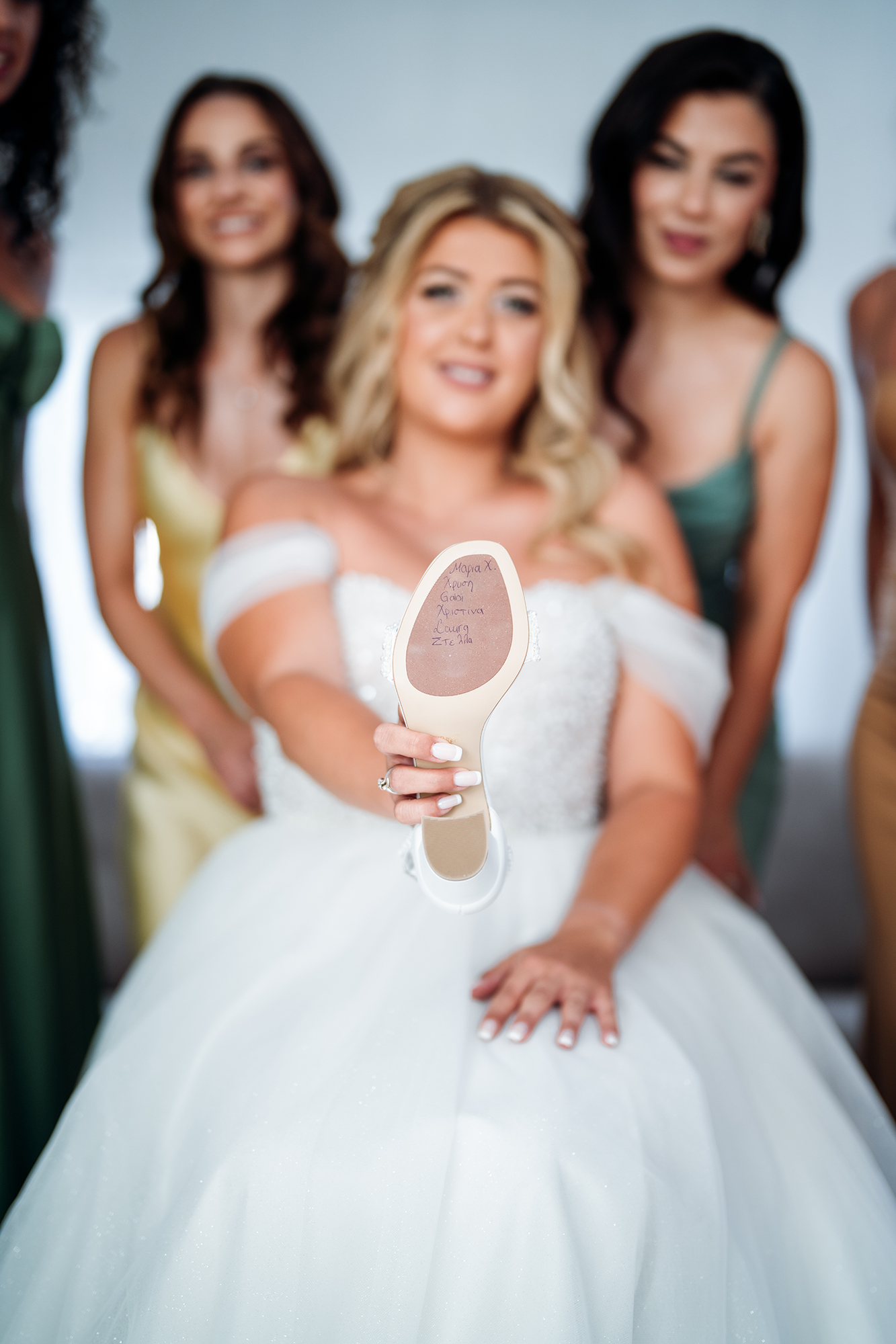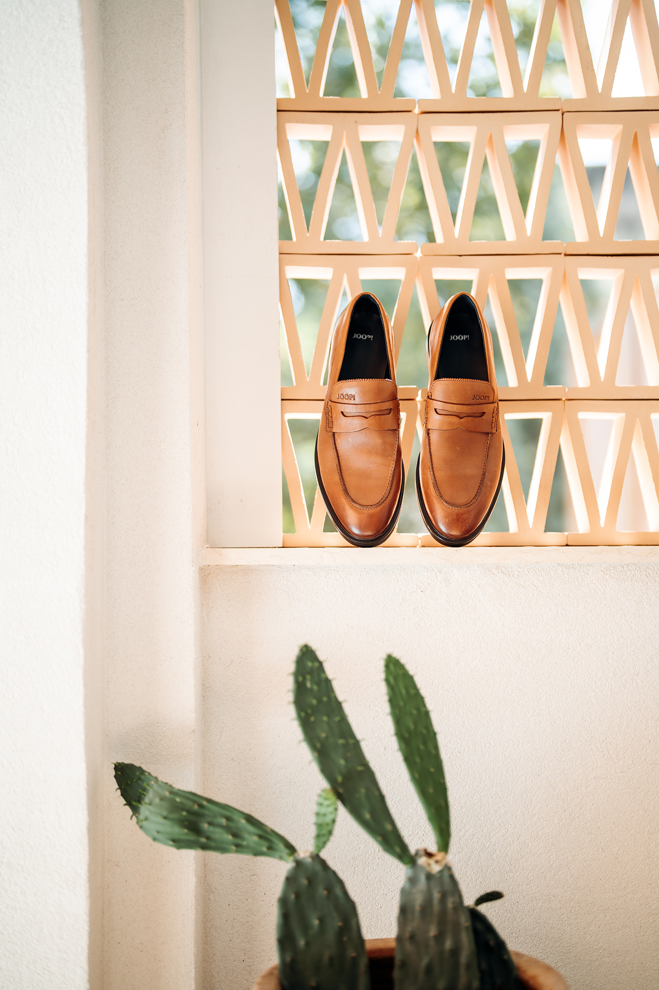 Yiannis listened to us and got dressed at a beautiful hotel. Nicole got ready at her parents’ house and walked to the church next door.