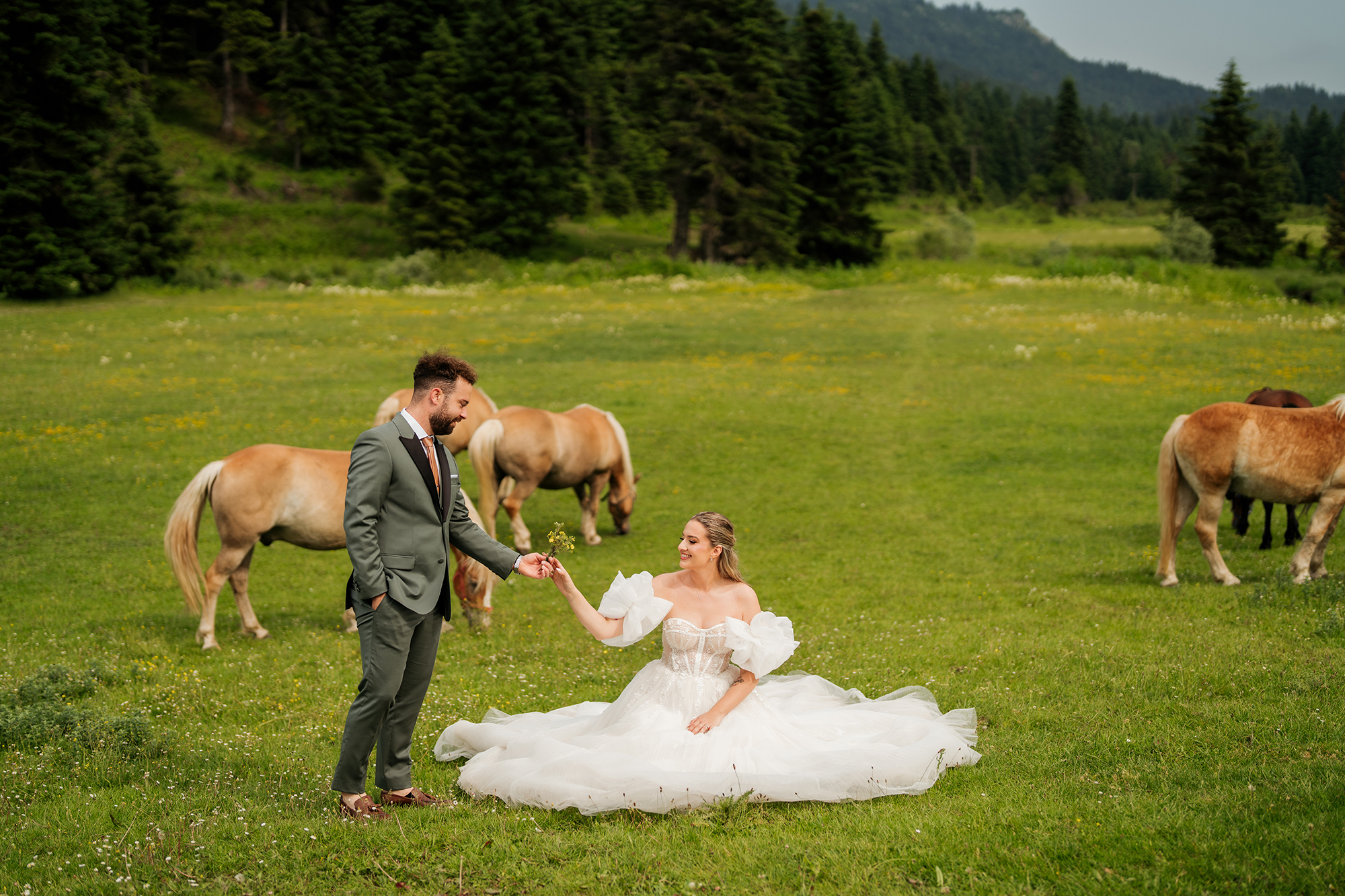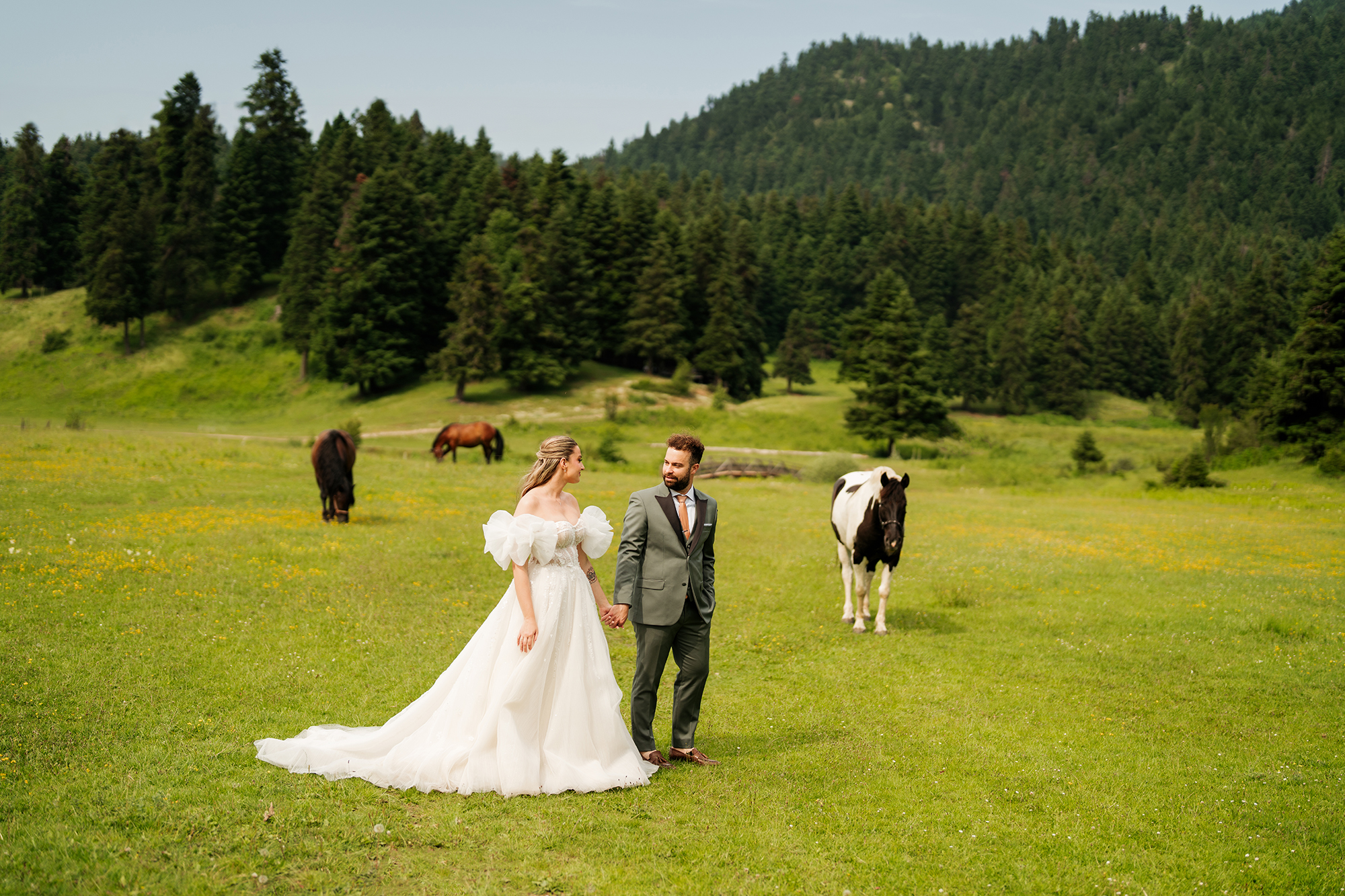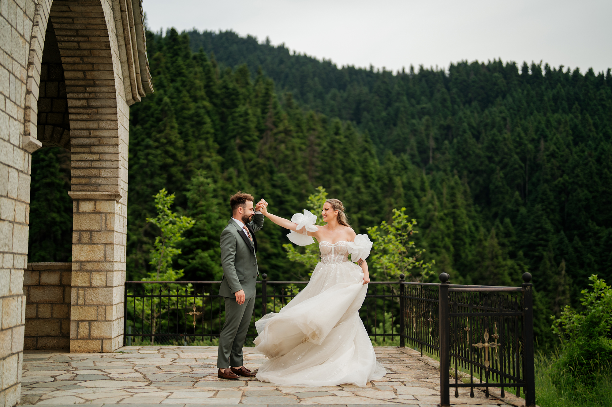 What I’ll definitely remember from this wedding is the wild party and the Day After photoshoot in Elati. The fir trees, the wild horses and the wooden bridges were all there to create a magical setting!