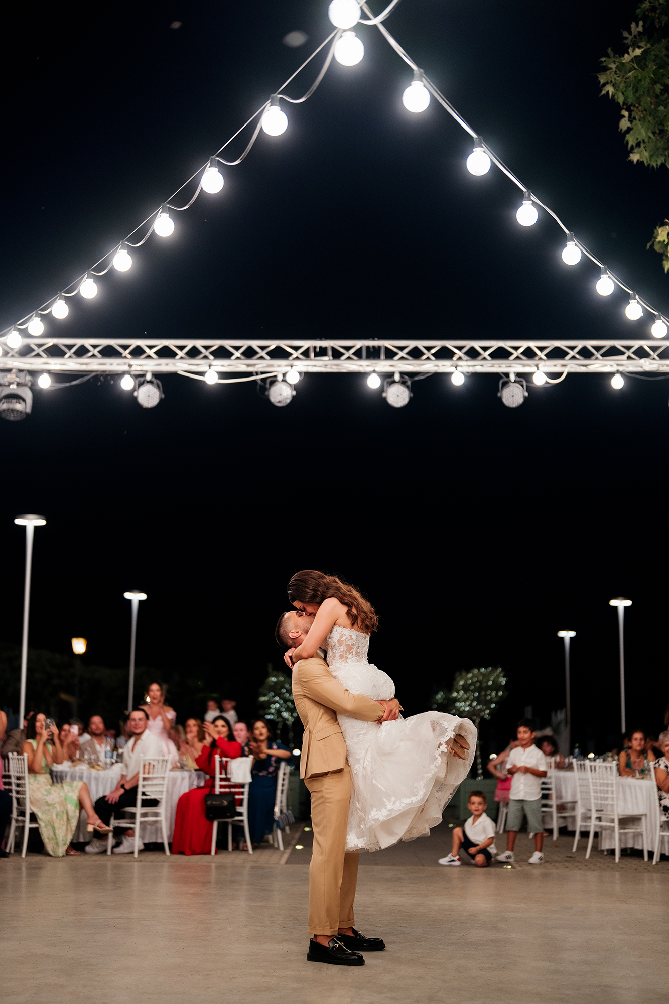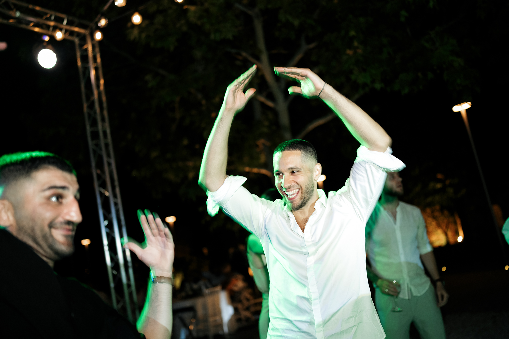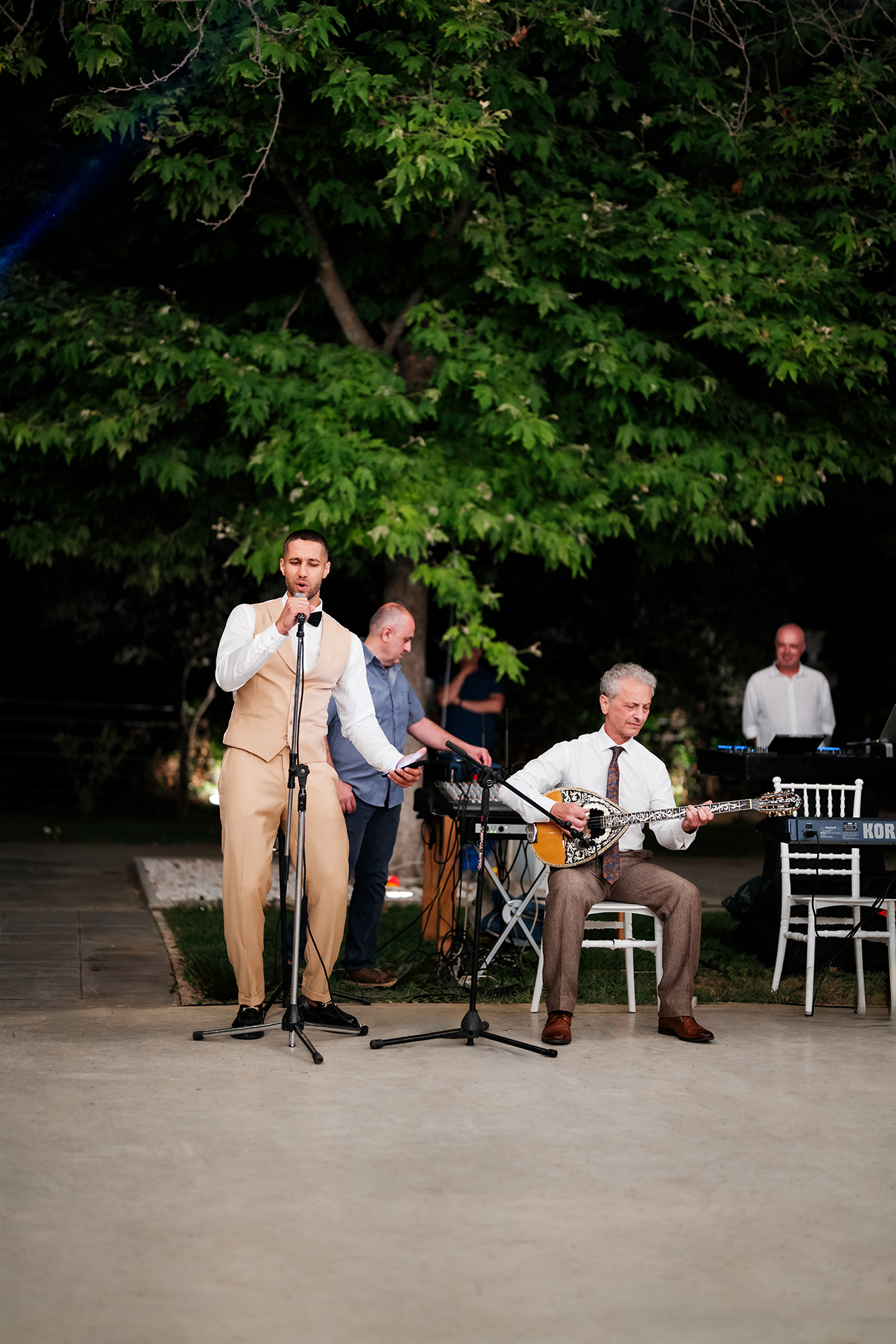 The reception was a traditional Greek celebration, during which the groom sang a song dedicated to the bride.