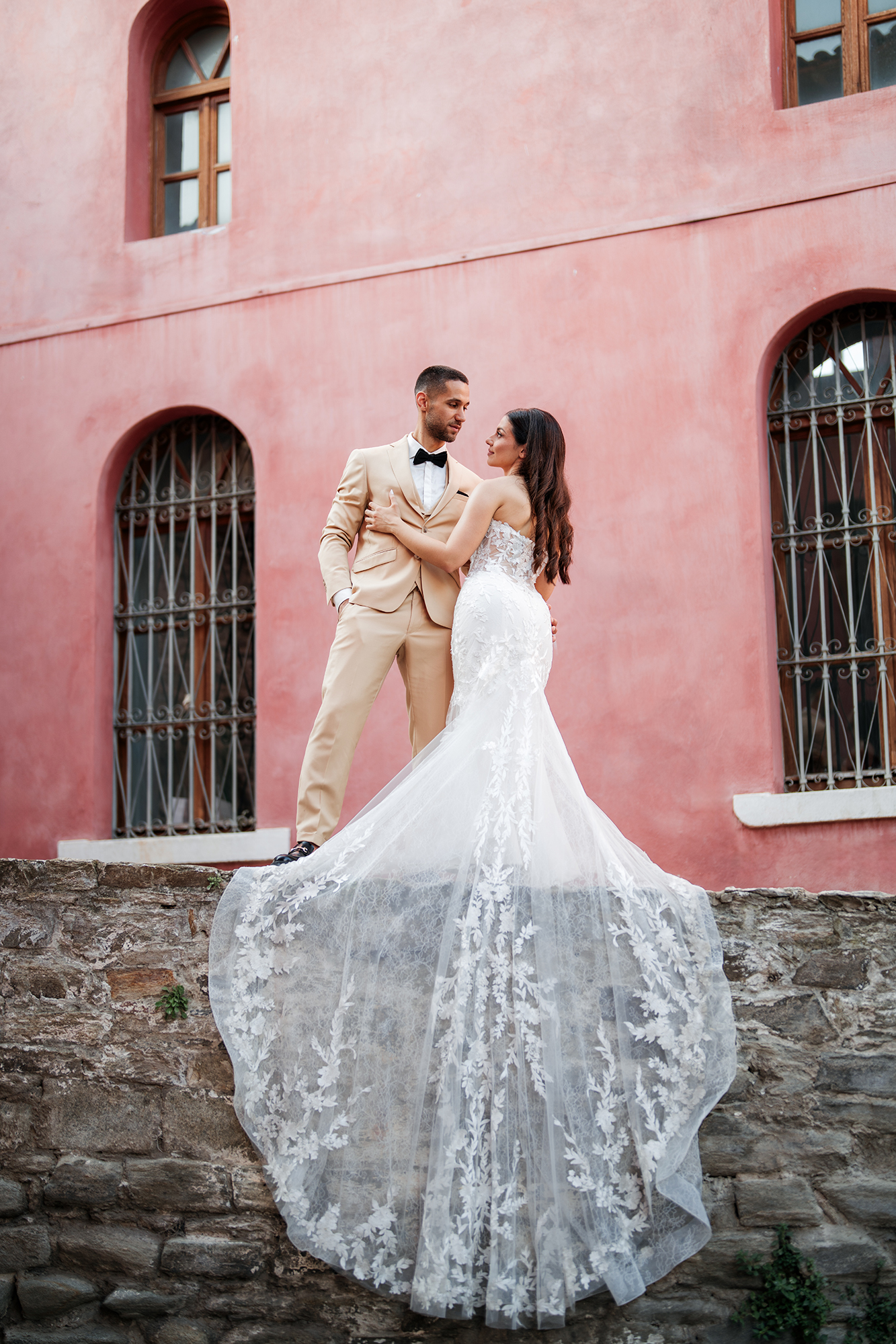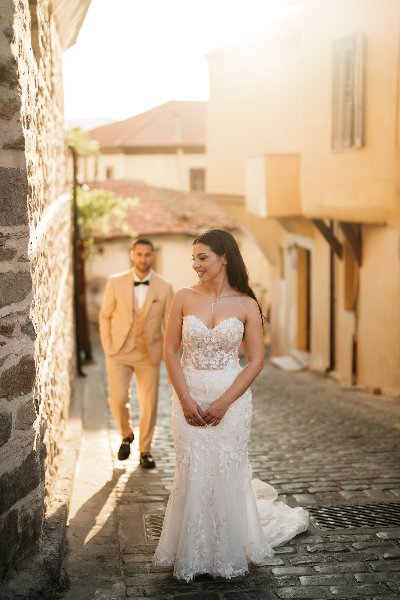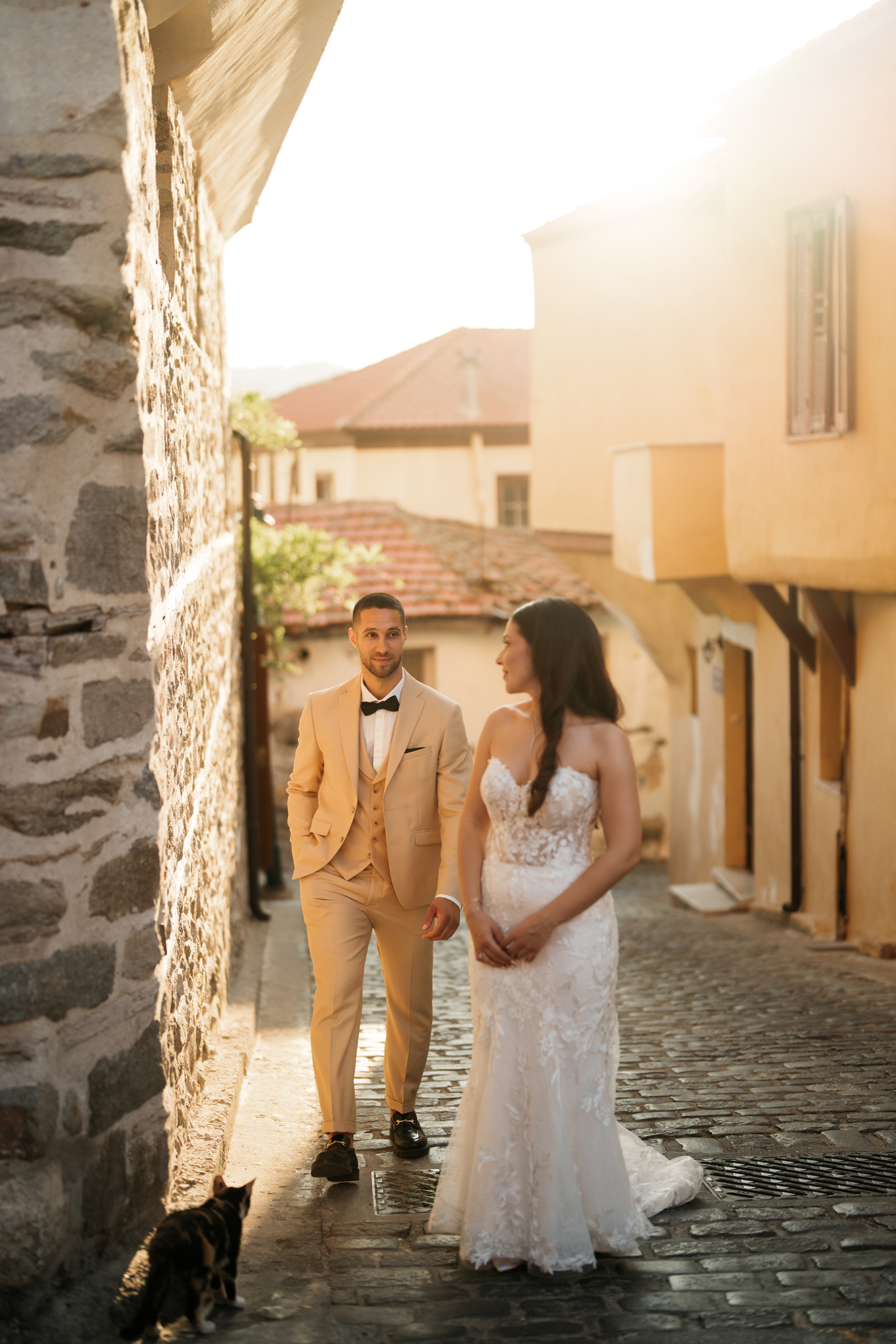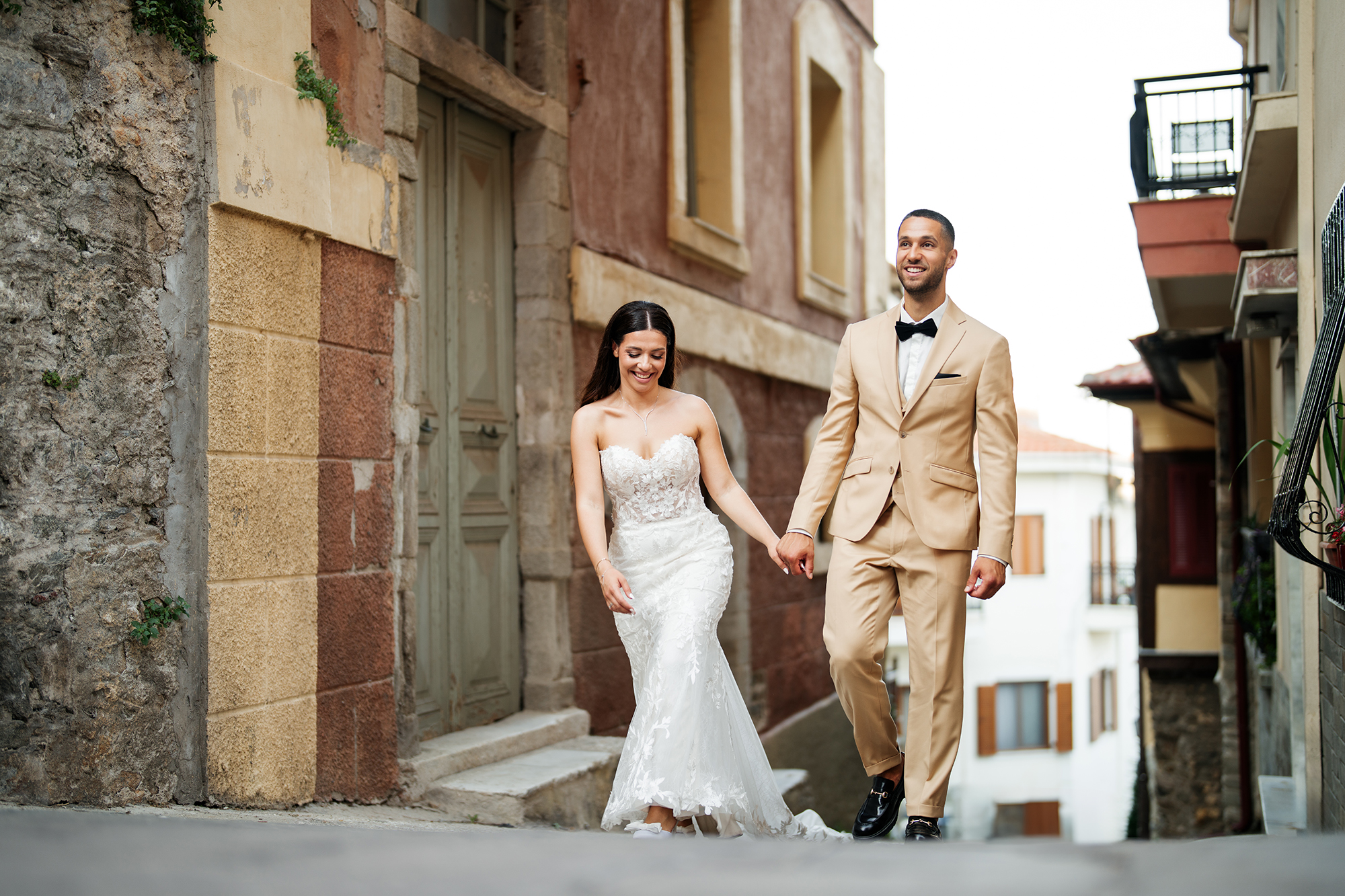The Day After, we took photos in the narrow streets of Kavala’s old town because the couple wanted something that felt distinctly Greek.