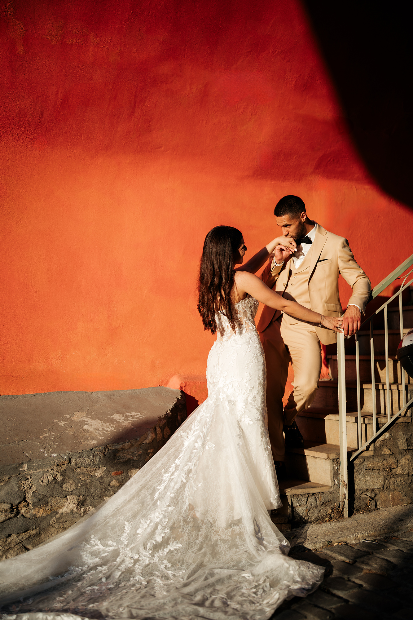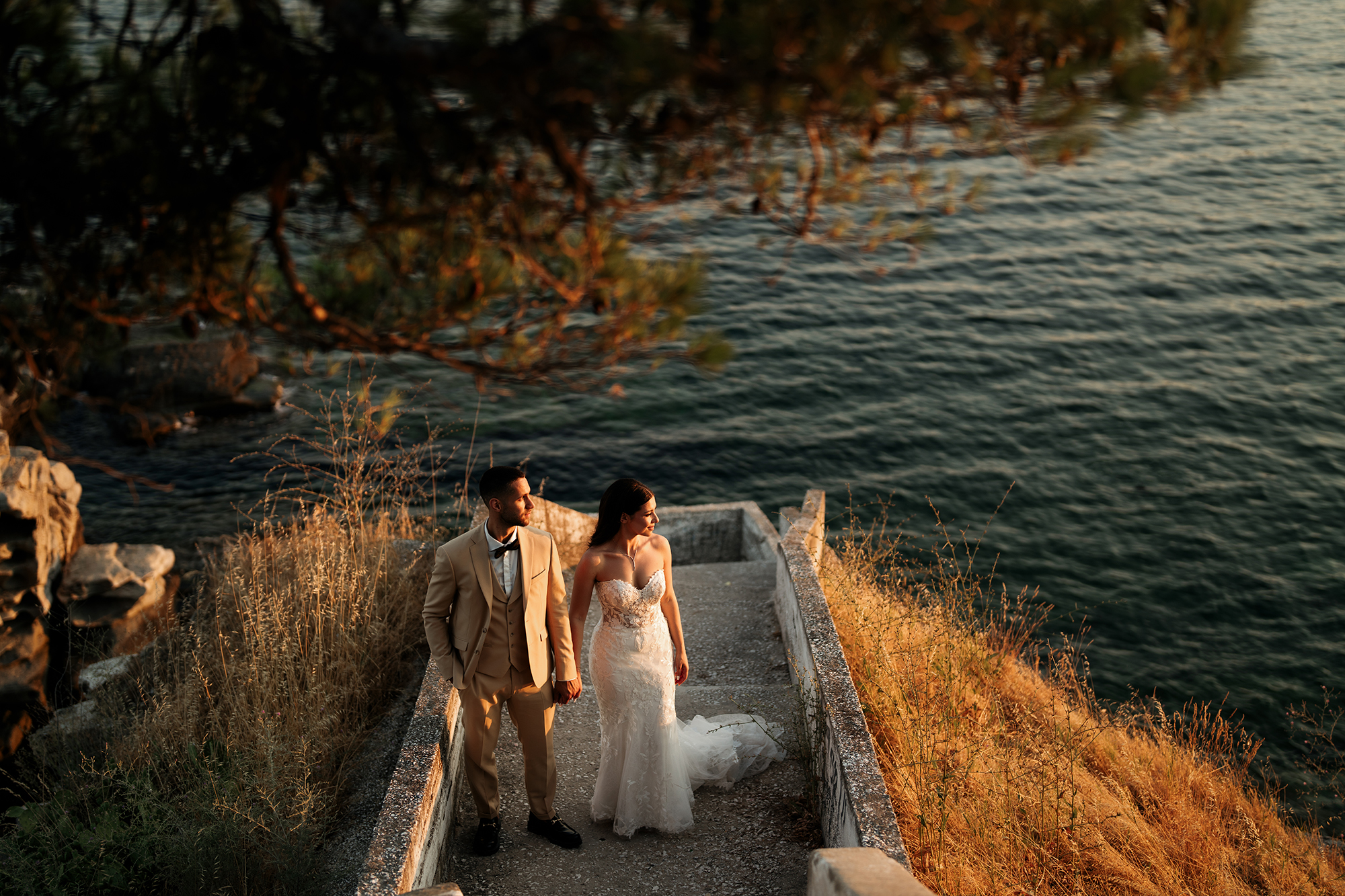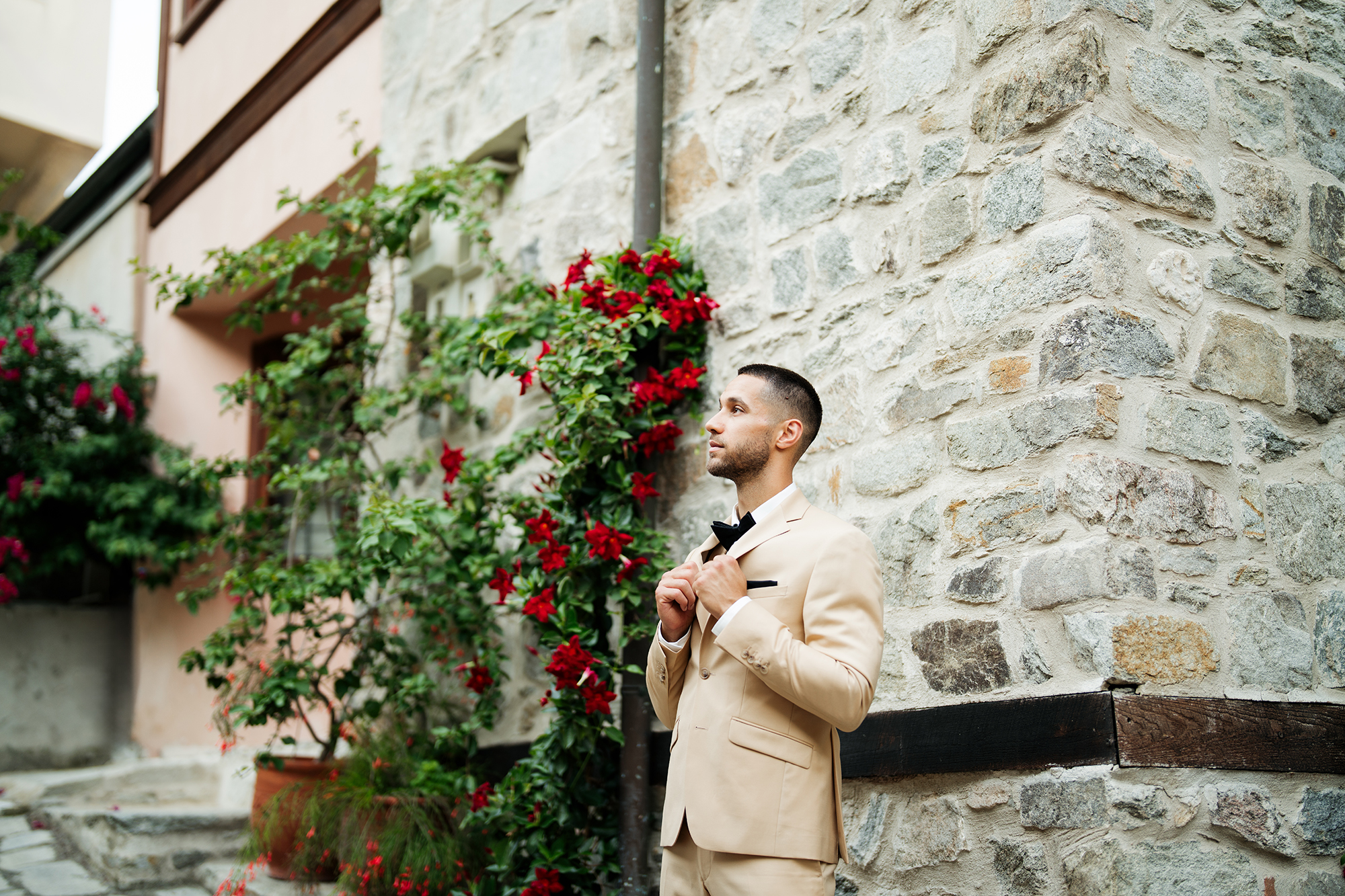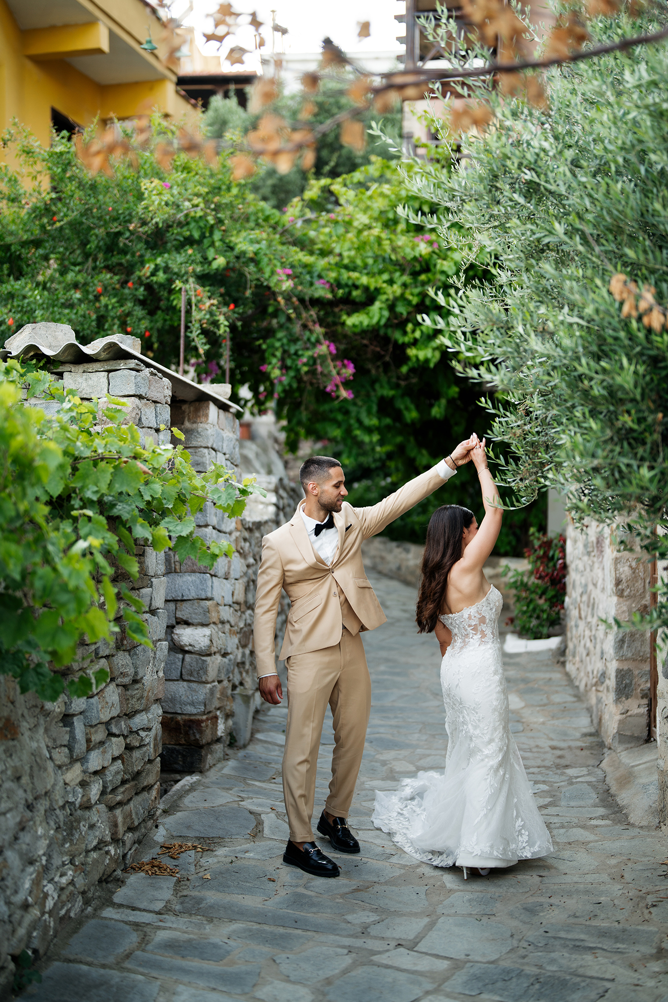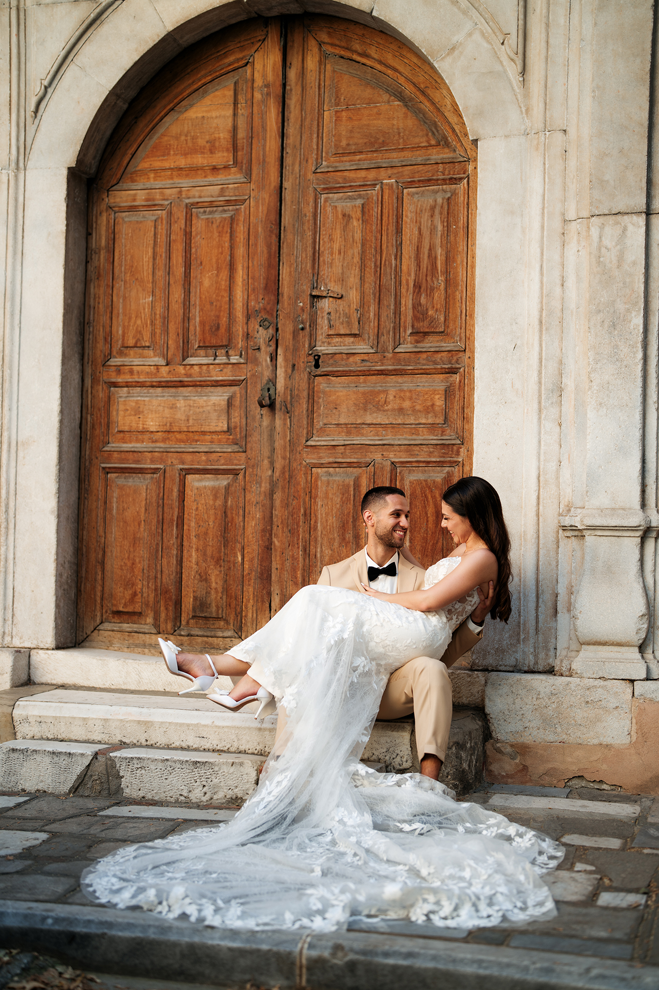 The Day After, we took photos in the narrow streets of Kavala’s old town because the couple wanted something that felt distinctly Greek.