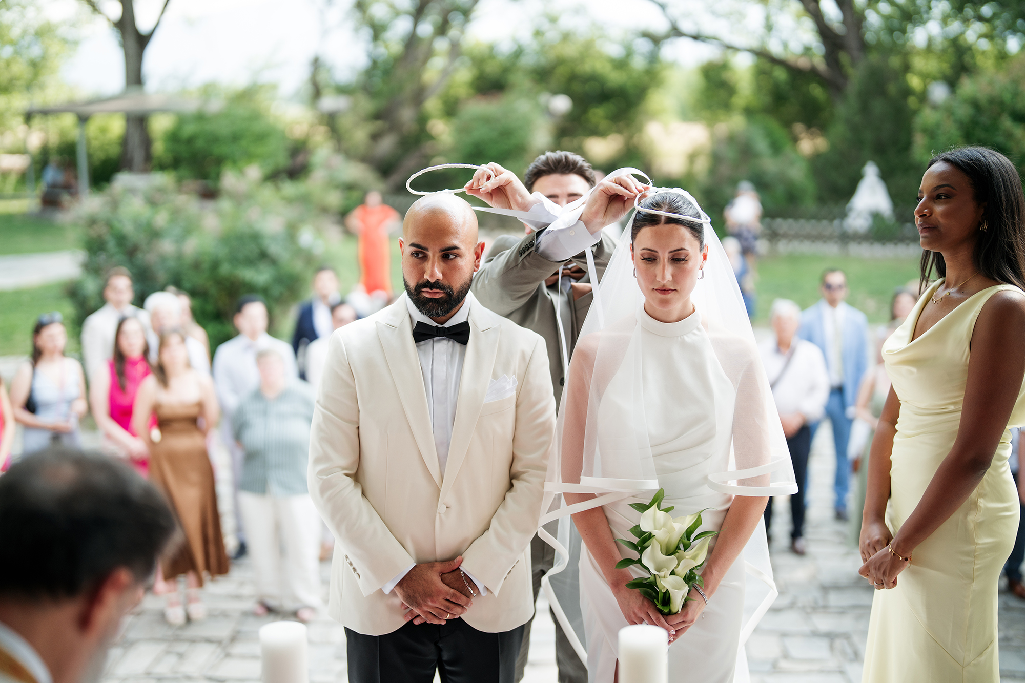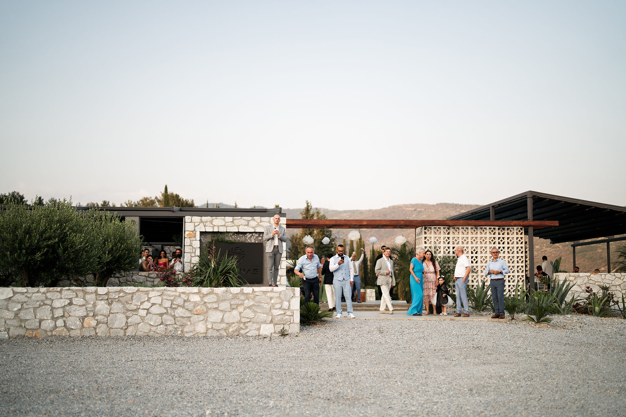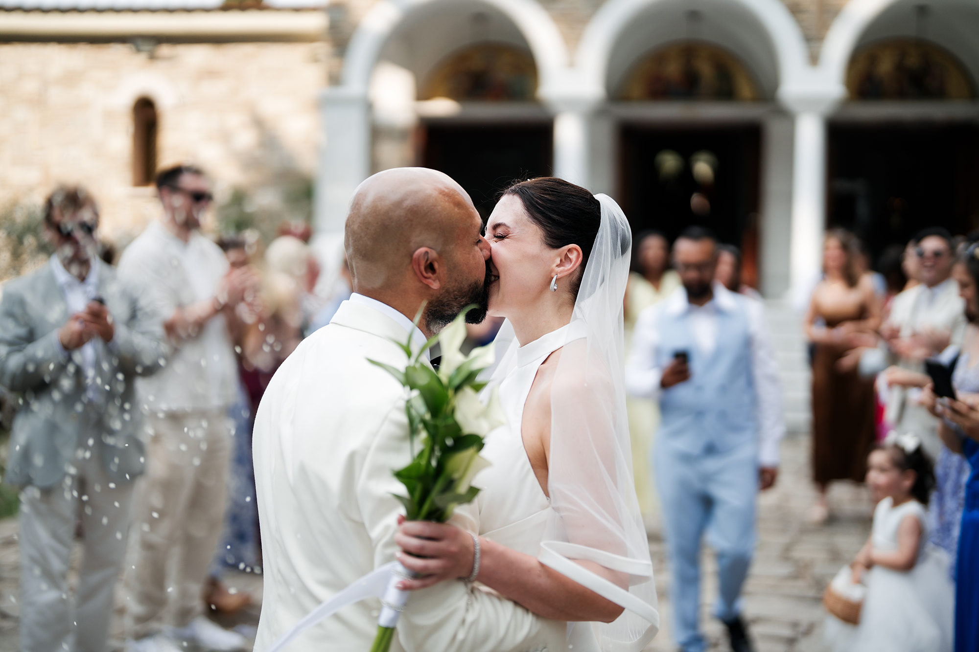 Traditional elements were present throughout the wedding, such as the groom entering the church accompanied by a lyre and the couple entering the reception to the sound of Pontic songs.
