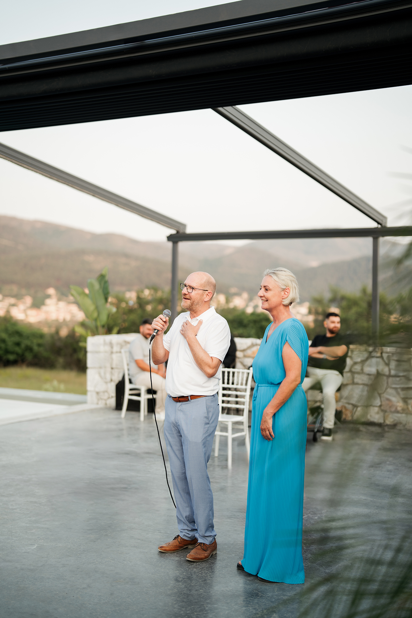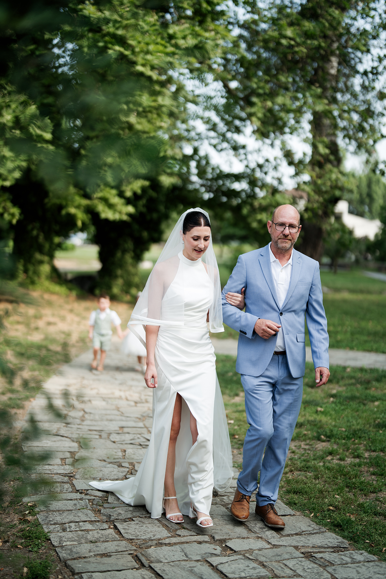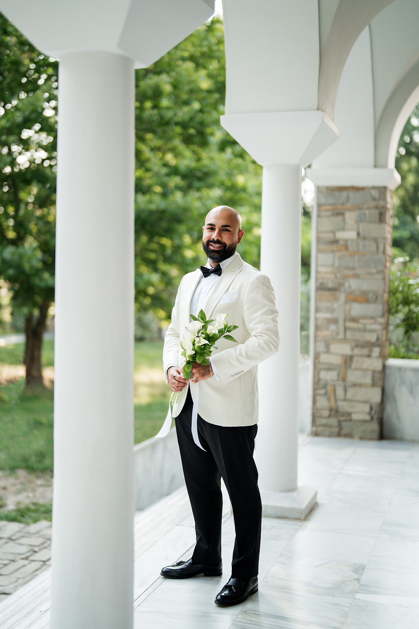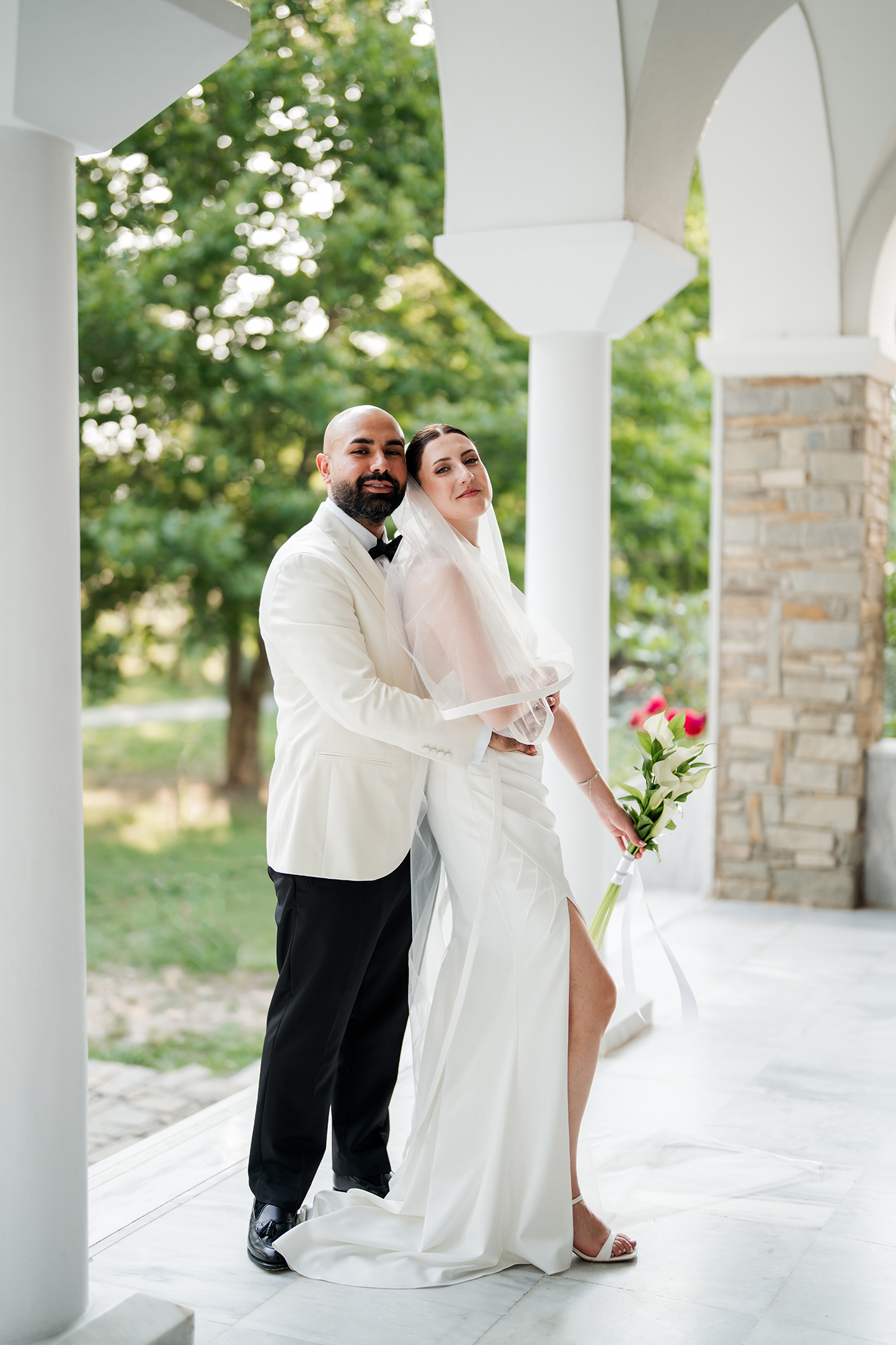 Traditional elements were present throughout the wedding, such as the groom entering the church accompanied by a lyre and the couple entering the reception to the sound of Pontic songs.